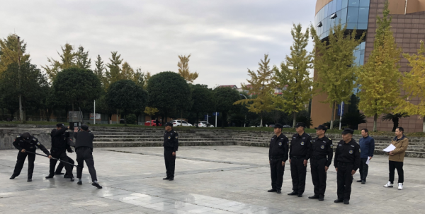 为提升学校保安人员素质,规范日常安保行为,提高其反恐防暴和消防应急处置能力,确保校园安全稳定。在为期半个月的集中训练基础上,11月16日,pp电子组织全体保安在天佑广场开展2023年保安技能比赛活动。
