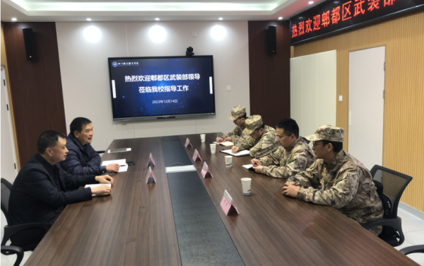 2023年12月14日,郫都区武装部长李舸、政委宋克建一行4人莅临pp电子调研指导征兵工作。副校长黄勇会见了李舸一行并主持召开了交流座谈会。