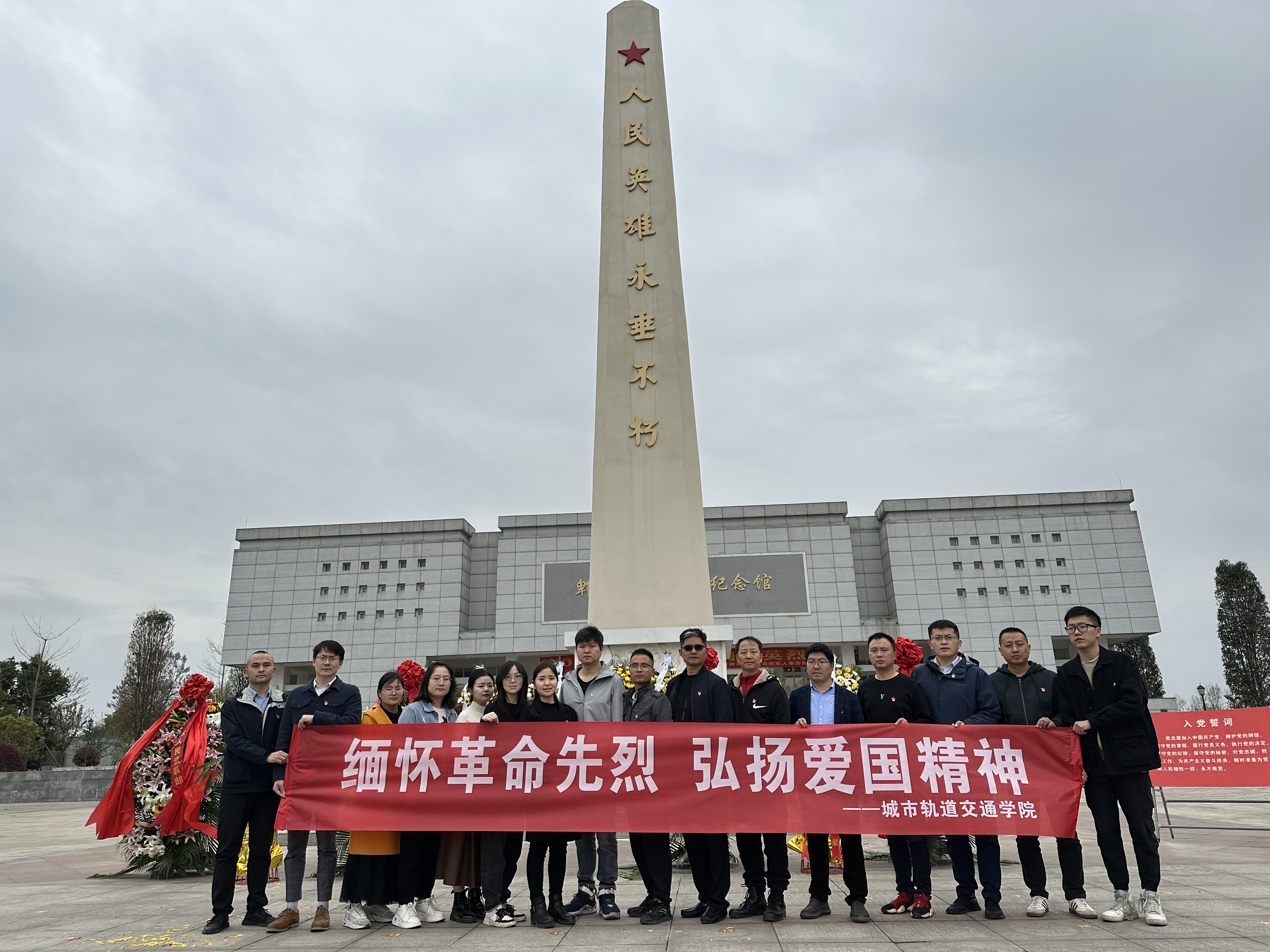 为深切缅怀革命先烈,赓续红色血脉,弘扬爱国主义精神,加强党员党性教育。2023年4月3日,城市轨道交通学院党总支组织全体党员、入党积极分子、学生干部代表前往郫都区烈士陵园开展清明祭扫、重温入党誓词、参观革命烈士纪念馆等爱国主义教育活动。