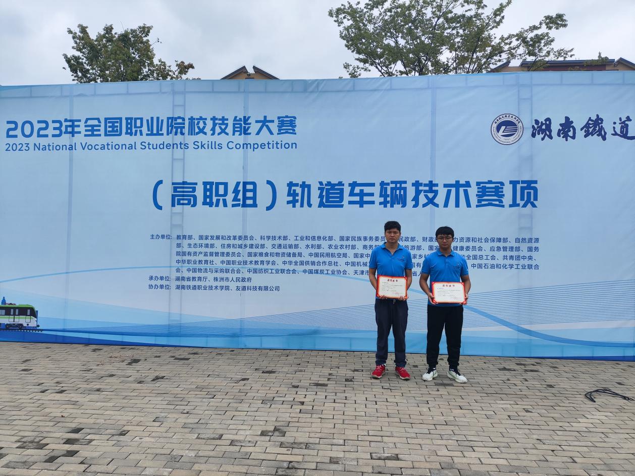 2023年全国职业院校技能大赛(高职组)轨道车辆技术赛项于8月25日—28日在湖南铁道职业技术学院举办,来自全国27个省市自治区的50所高职院校参赛,经过两天的激烈角逐,由pp电子城市轨道交通学院教师何劲辉、学生王炎组成的竞赛团队荣获三等奖。