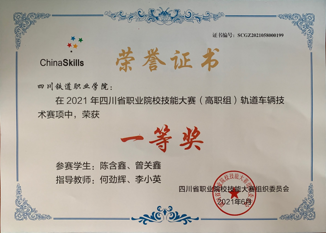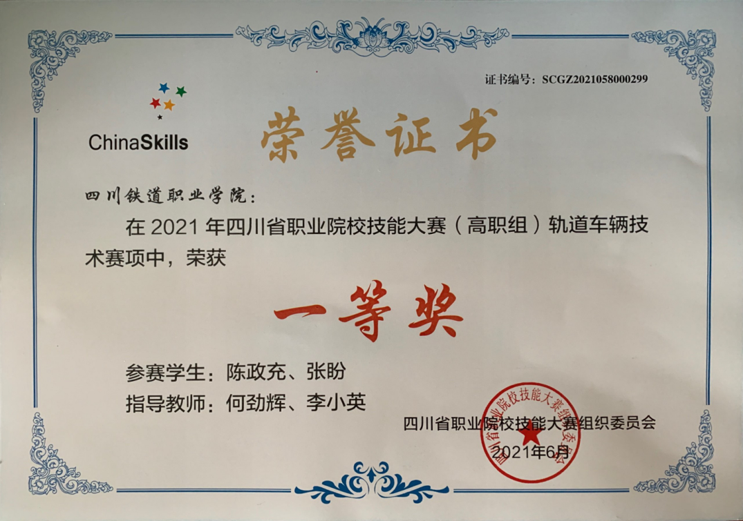 2021年9月3日,pp电子游戏官网收到了四川省教育厅颁发的“2021年四川省职业院校技能大赛(高职组)轨道车辆技术”赛项的荣誉证书。