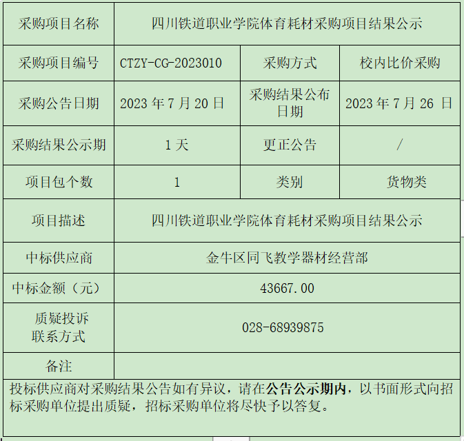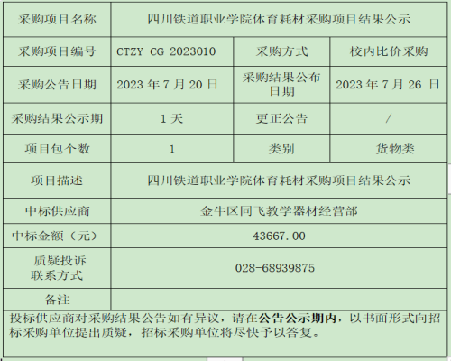 pp电子游戏官网体育耗材采购项目结果公示