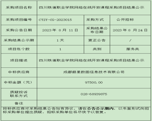 pp电子游戏官网网络在线开放课程采购项目结果公示