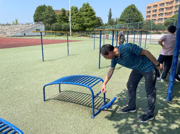 为切实加强校园安全工作,根据学校《安全管理责任清单》《校园突发事件应急处置预案》《一日安全常规检查办法》《节假日安全大检查工作方案》等文件精神, 7月7日,公共教学部副主任杨伦军组织体育教研室全体教师进行了期末安全大检查。 此次安全大检查主要针对体育场地设施及周边环境、办公室电器设备、消防设施等方面进行隐患排查,就存在的安全隐患已落实整改,将在后期形成安全检查报告上报学校相关部门。 杨主任强调,校园安全是底线,树立“生命至上,安全第一”的发展理念,要牢记安全底线意识。他希望体育老师定期开展隐患排查整治工作,确保体育活动的安全开展,为师生创建安全舒适的锻炼环境,迎接党的二十大胜利召开。 图2.检查仰卧起坐器材 |