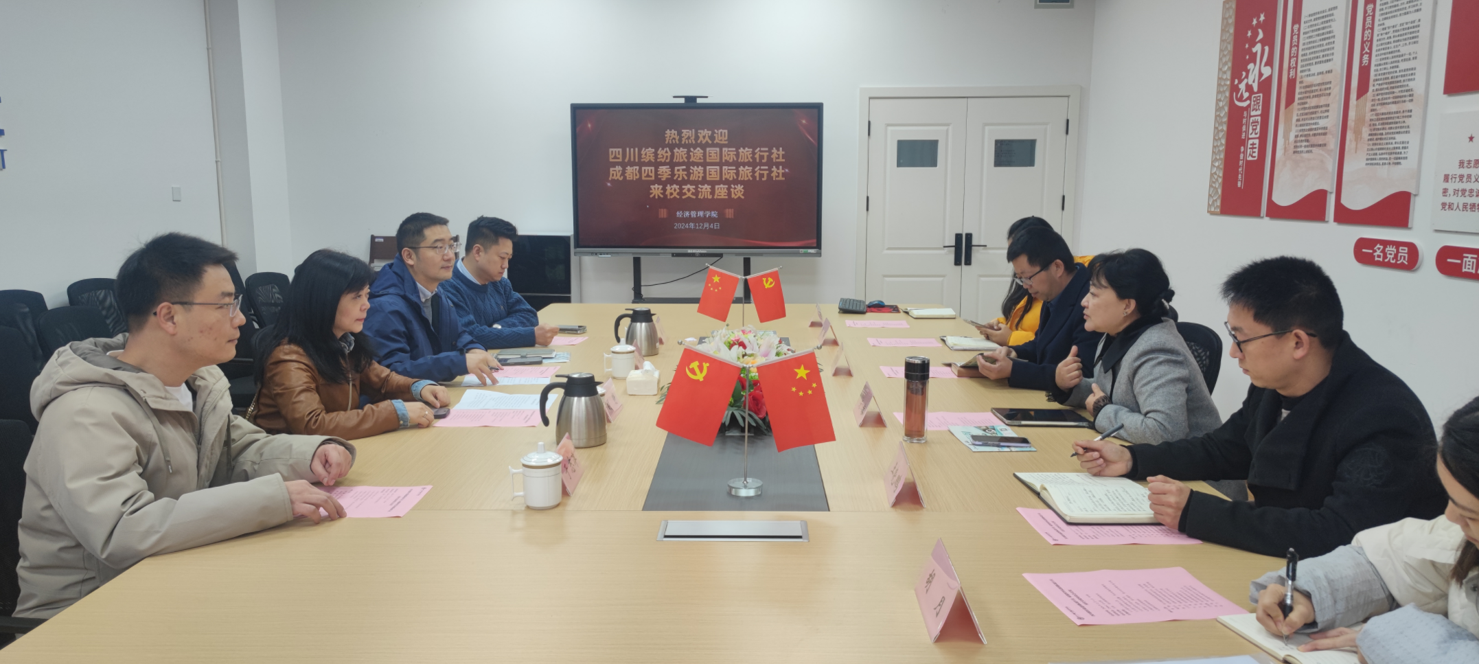| 深化校企合作协同育人 助力“熊猫专列·成都号”建设投运 ——四川缤纷旅途国际旅行社、成都四季乐游国际旅行社莅校交流合作 |