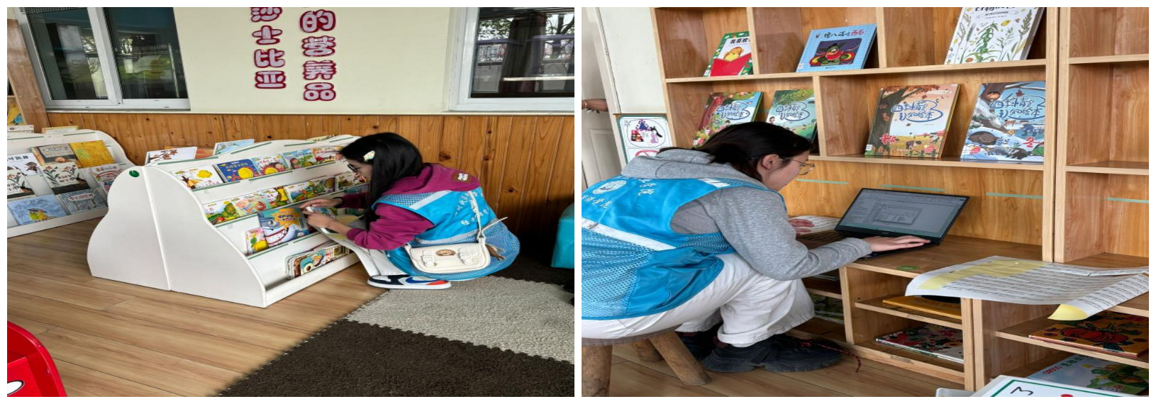 志愿者们兵分两路开展活动。第一组志愿者主动协助幼儿园教师,承担起教学资料归档、学生档案数字化整理以及教室环境布置等任务。另一组志愿者则将关注的重点放在了孩子们身上。他们走进幼儿园图书室,以“小手拉大手”的温馨模式,与幼儿共同参与书籍整理工作,还声情并茂地为孩子们讲解绘本故事。志愿者们精心设计了卡通贴纸互动环节,不仅充分激发了孩子们的阅读兴趣,同时也锻炼了幼儿的动手能力。