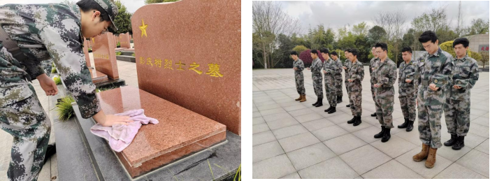 战术队全体成员齐唱国歌,整齐列队,在庄严肃穆的烈士碑前肃立默哀,表达对烈士的崇高敬意和深切悼念之情。随后,战术队副队长陈栩致悼词:“为人民解放而抛头颅洒热血的英勇烈士们永垂不朽。无论你们逝去多久,我们都将永远追寻你们的足迹,传承永恒的红色精神。我们接过的不仅是历史的火炬,更是民族复兴的使命。请先烈放心,强国有我”。默哀仪式完成后,战术队全体成员前往陵园为烈士们擦拭墓碑、分享感悟,并前往郫都区革命烈士纪念馆追寻先烈的足迹。