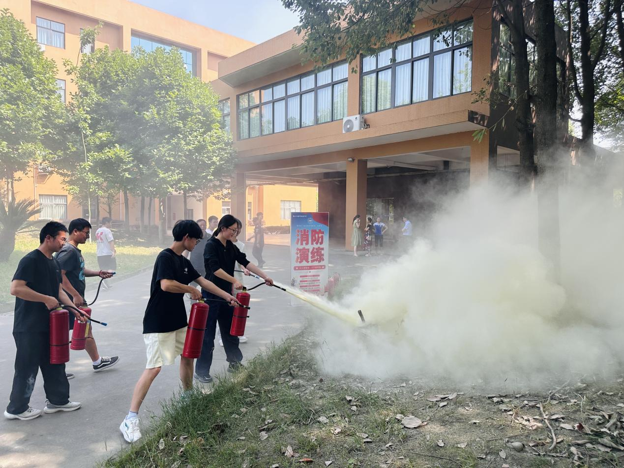 下午15点35分,消防警报声骤然响起,疏散演练正式进入实战阶段。在各楼层工作人员引导下,按照预定疏散路线,同学们迅速用手臂紧紧捂住口鼻,弯腰、快速有序地撤离。一楼读者在30秒内完成快速撤离,二至三楼师生通过两侧楼梯分流,2分钟内到达集合点,四楼智能23T2班学生沿专用消防安全通道及右侧楼梯撤离,全程有序、无推挤现象,全体人员4分钟内到达疏散集合点。疏散演练后,安全保卫处老师现场演示干粉灭火器“提、拔、握、压”四步操作法,以及消防栓正确连接和使用方法,图书馆工作人员和勤工助学学生进行实操灭火训练。
