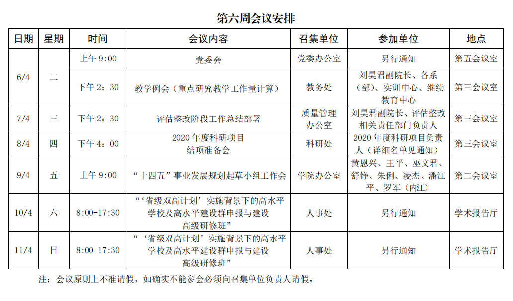 第六周会议安排