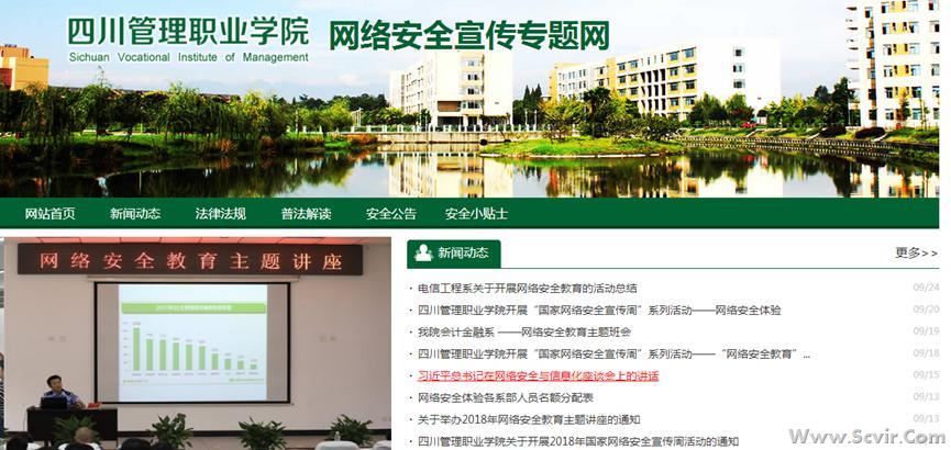 9月17日-23日是第五个国家网络安全宣传周。学院紧扣今年宣传周“网络安全为人民,网络安全靠人民”的主题,统一协调多个部门,采用线上线下结合、校内校外联动的形式,组织动员师生广泛参与,助力营造健康文明的校园网络环境。 9月17日起,思政部、图书信息中心、院团委、学生处、各系部联动,利用网络平台开展了形式丰富,实用性强的网络安全教育宣传活动。学院官网主页设专题网站,学校微博和微信公众号发布相关主题新闻,校园内悬挂宣传横幅、摆放宣传板,帮助师生提升网络安全意识和防护技能。 同时,学院也组织了多场线下宣讲活动。17日,邀请了“四川省警察散打评书第一人”——郫都区公安分局宣传民警耿琦警官做“网络安全教育”专题报告。百余名师生代表参与了讲座,现场学习氛围十分浓厚。17、18日,各系团总支组织开展了形式活泼、内容丰富的网络文化活动,宣传网络安全知识,教育引导学生的网络行为。19日,由思政部龙燕老师、校团委张乃文老师带队,共计46名学生代表前往成都世纪城新国际会展中心参观了网络安全博览会,近距离体验网络安全。 此次网络安全周系列活动,进一步巩固了全体师生的网络安全维护意识,积极推动形成人人重视网络安全、传播网络空间正能量的校园氛围。