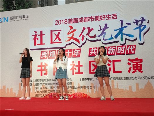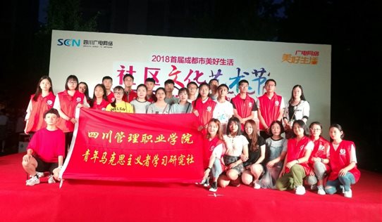 “辉煌40年,共筑新时代”,2018年6月2日,成都市首届美好生活社区文化艺术节在我院思政实践教学社区服务基地——郫都区书院社区举行,活动由四川广电网络成都分公司主办,书院社区协办。受社区党委邀请,我院青马社成员在思政部龙燕老师的带队下赴现场开展志愿服务工作。 青马社志愿者们根据主办方活动安排,14:00到达活动现场后,立刻投入到布置活动现场、设置服务摊点、摄影宣传等筹备工作当中,参演节目的同学立即换好演出服投入紧张的彩排中。演出活动18:30正式开始,志愿者们坚守自己的岗位,认真做好维持舞台、现场、摊点的秩序以及摄影等工作。孙于涵等3位同学演唱了《热曲串烧》,苟岚涵等9位同学表演了健美操《海草舞》。同学们的优质服务和精彩演出得到了主办方的高度认同和居民们的喝彩。社区党委书记高度赞扬我院学生的志愿服务工作,希望与青马社长期合作。 同学们从下午两点工作到晚上九点,没有任何抱怨,积极主动地协助主办方做好活动前的筹备工作、活动中的服务和演出工作、活动后的扫尾工作。他们纷纷表示,本次实践活动受益匪浅,不仅感受到新时代下社区的“个性化、品质化”的服务理念,更为能在社区工作中贡献一份自己的力量感到骄傲。此次活动彰显了我院青马社成员的青春风采,在奉献社会的实践中共筑和谐新时代。 集体合影