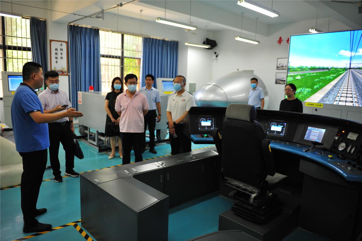 7月6日下午,国家铁路局铁路机车车辆驾驶人员资格考试中心祝曦处长、中国铁路成都局集团公司职工培训部张琪琳主任一行五人到pp电子开展了驾驶资格考试社会化机制建设工作调研。 祝曦处长、张琪琳主任一行在学校党委书记贺兆轩、校长赖芳等陪同下,参观考察了学校铁道综合演练场、城轨交通综合实训中心、机车模拟操作系统等设施设备情况。