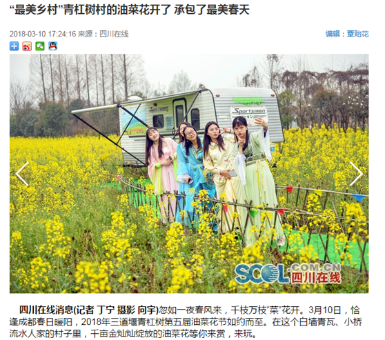 为协助青杠树村推进乡村振兴战略,充分发挥思政实践基地服务社区的功能,2018年3月10日,思政部龙燕老师带领思政实践小组16名志愿者学生,受邀参加三道堰青杠树村第五届油菜花节开幕式活动。 早上9:00,师生一行到达目的地,在主办方负责人的安排下,同学们身着汉服、展示汉文化,为游客提供咨询、引导服务和文明劝导。同学们的优质服务成为景区一道亮丽的风景,得到了游客的赞赏和主办方的高度认可。作为开幕式活动中的一大亮点,同学们还接受了四川日报、成都电视台等媒体的关注和采访。 活动当天,气温较低,阵阵春风略带一丝凉意。同学们在景区忙碌了整整一天,却没有任何抱怨。同学们表示:在此次实践活动中受益匪浅,既亲身感受到了“乡村振兴正当时”的新农村风貌,也为助推乡村发展振兴贡献了一份自己的绵薄之力。希望今后能有更多此类实践活动,为服务社区贡献自己更多的力量。