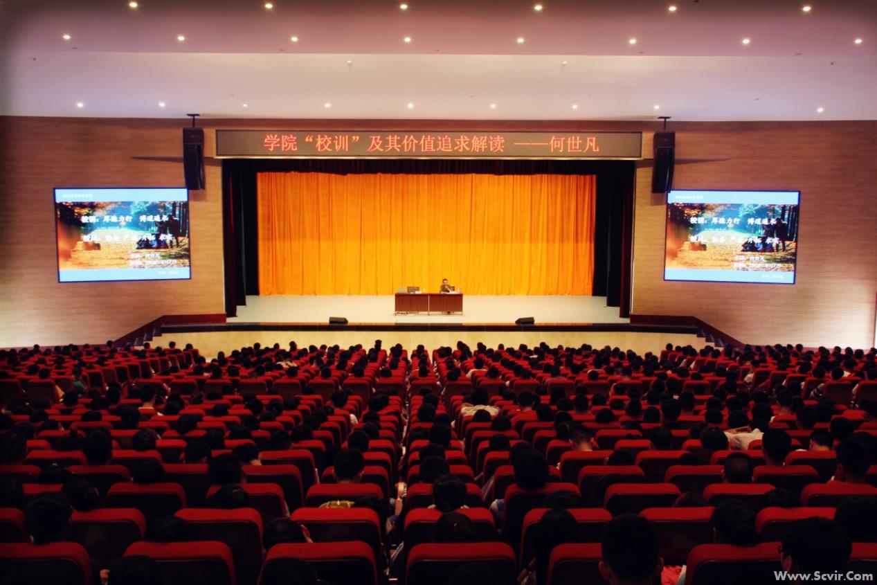 9月7日下午,新落成的学校大礼堂迎来了处女秀:pp电子国学造诣颇深的学者何世凡老师在这里作“学院‘校训’及其价值追求解读”的专题报告。1200个座位座无虚席,2016级新生在这里接受他们进校的第一场校园文化专题熏染。 pp电子“厚德力行,博道通术”的校训,以“为人”、“为学”为主旨,强调求真求知与人格完善兼顾,培养德才兼备的人。“厚德”出自《周易》“地势坤,君子以厚德载物”。强调pp电子以道德为本,德育为先,提高师生道德修养,树立正确价值观、人生观、世界观。“力行”出自《中庸》“好学近乎知,力行近乎仁,知耻近乎勇。”要求师生身体力行,与时偕行,做一个有仁心、有仁德、有仁爱的人。“博道通术”出自《墨子》,体现了科学与技术相结合的职业教育特色,重视技术应用和行业需求。校训兼收儒、墨两家核心思想,承载着深厚的历史和文化底蕴。字字珠玑,指引青年学子立身处世,把握学问之道和为人之道。不仅强调了学生对知识、技能和真理的不懈追求,同时也要求学生塑造健全人格,传承传统文化。既要“成才”,更要“成人”。