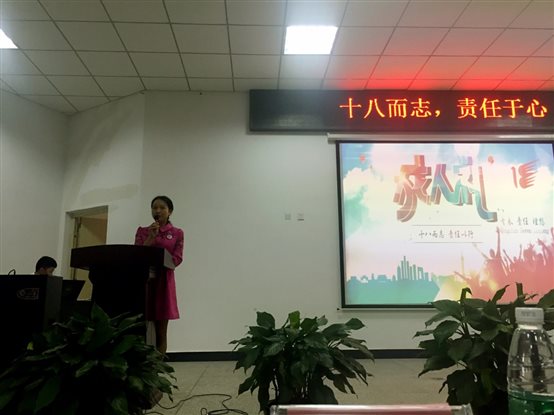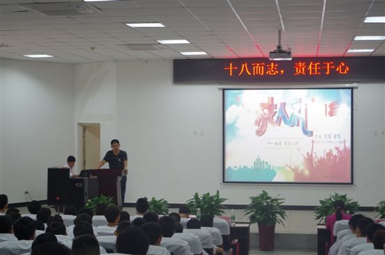 ——我院机车车辆系13A成人礼仪式 5月30日,由机车车辆系团总支学生会主办的“十八而志,责任于心”成人宣誓仪式在学术报告厅举行,机车车辆系13A的全体学生参加了此次活动。校团委书记朱俐、机车车辆系党总支书记王文杰、机车车辆系副主任杨伦军、辅导员杨钦淳等老师应邀出席了仪式,仪式由机车13A3班陈俊杰同学主持。 面对鲜艳的五星红旗,二百七十多名学生立下庄严的誓言。一位刚参加完宣誓的同学描述自己的感受:“当举起手对着国旗宣誓的时候,有一种很庄严的感觉,而且真正意识到自己已经长大了!有点激动,有一种自豪感。”同学们纷纷表示在成人之后要怀感恩之心,履尽责之行,立鸿鹄之志。 总支书记王文杰勉励同学们:希望同学们能牢记誓言,履行职责,忠于祖国,忠于宪法,肩负历史的重任,用青春和智慧托起明天的太阳!校团委书记朱俐老师寄语同学们,期望大家能读懂责任、自立自强,把承担社会责任作为个人成长的始终要求;在大学的学习生活中,能志存高远,争做国家栋梁,收获充实而有价值的人生。 此次活动中最令人感动的一幕是三位同学在完全不知情的情况下得到了父母的祝福。我们的工作人员在前期的准备工作中,联系了这三位同学的父母,并录制了视频。三位同学的父母在视频中表达了对孩子成人的祝福,朴实的语言传达的对孩子无限的爱,令三位同学几度哽咽。祝福视频引起现场阵阵掌声。随后同学们在心愿纸上写下了对未来的期盼。 庄严而温馨的成人礼不仅仅是一个仪式,它更是一次生动的思想教育活动。成人不仅是年龄的增长,更应是思想的成熟。与会同学一致表示深受教育和鼓舞,他们说,一定要牢记师长和父母嘱托,肩负责任,刻苦学习,切实履行一位合格公民应尽的义务,努力感恩社会、回报社会。 图为全体学生宣誓 图为机车车辆系王书记讲话