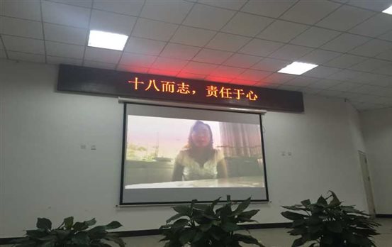 图为校团委书记朱俐老师讲话 图为学生家长的视频祝福