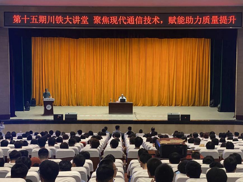 5月29日下午, 第十五期“川铁大讲堂”在学校大礼堂举行。四川省千人计划、四川省特聘专家、成都信息工程大学教授杜江为师生带来“聚焦现代通信技术 赋能助力质量提升”的专题讲座。副校长吴斌主持讲座。