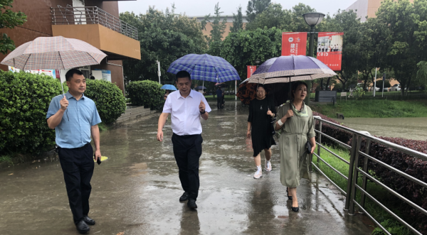 为给成都大运会顺利举行营造良好的校园环境,及时发现问题,消除安全隐患,7月13日下午强降雨期间,由校长赖芳带队,副校长黄勇和安全保卫处、学生处、教务处、后勤国资处等部门负责人及相关人员组成检查组,顶风冒雨对成都校区校园重点场所进行了安全大检查。