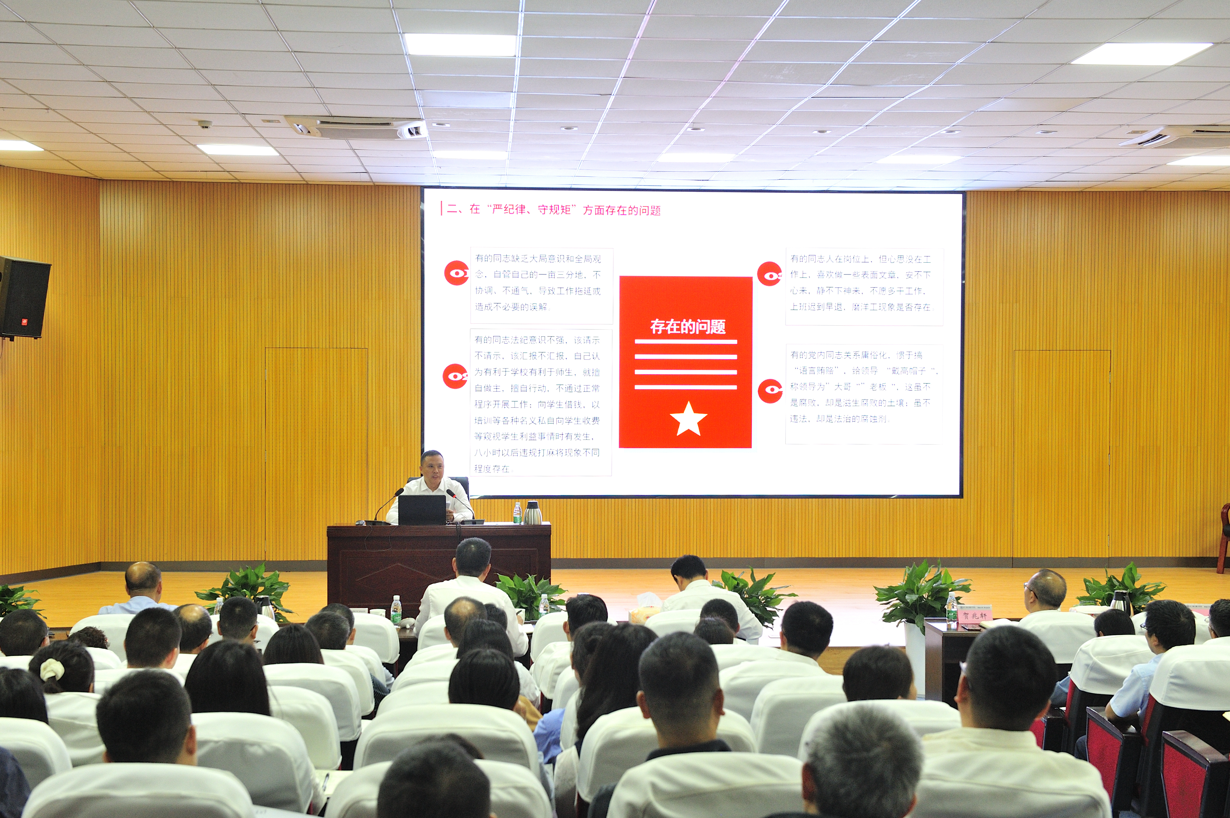 党委委员、纪委书记池秋平在“讲政治 守规矩 争做忠诚标杆”的主题分享中,对“政治纪律、政治规矩”进行了再认识、再学习,指出了学校行管人员在“严纪律、守规矩”方面存在的问题,要求党员干部、机关工作人员要从有“忠”的品格、有“家”的情怀、有“谋”的意识、有“心”的作为、有“廉”的决心,做“讲政治、守规矩”的践行者。