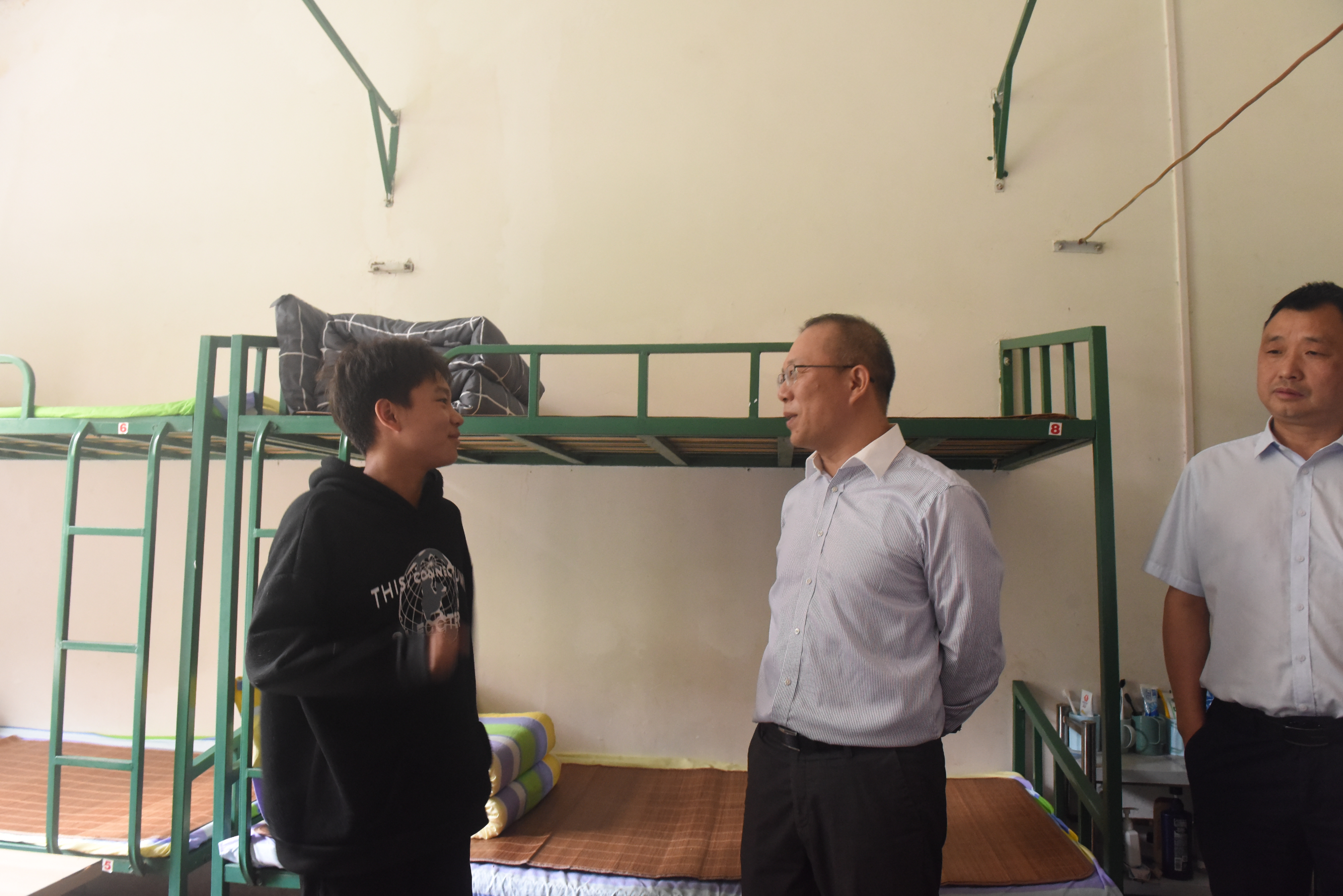 贺兆轩还到宿舍亲切看望了学生。 安全保卫处处长陈仲全和基建处陈朝术陪同调研。