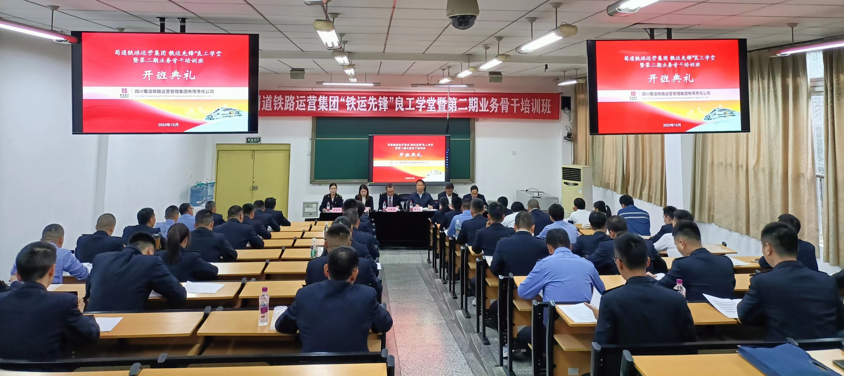10月23日,蜀道铁路运营集团“铁运先锋”良工学堂暨第二期业务培训班在学校内江校区举行开班仪式。川铁(宜宾)铁路有限责任公司党委书记、董事长刘登海,党群工作部(人力资源部)副部长杨爱萍,学校党委委员、副校长黄恩兴出席会议。蜀道铁路运营集团人力资源部部长王丽华主持会议。