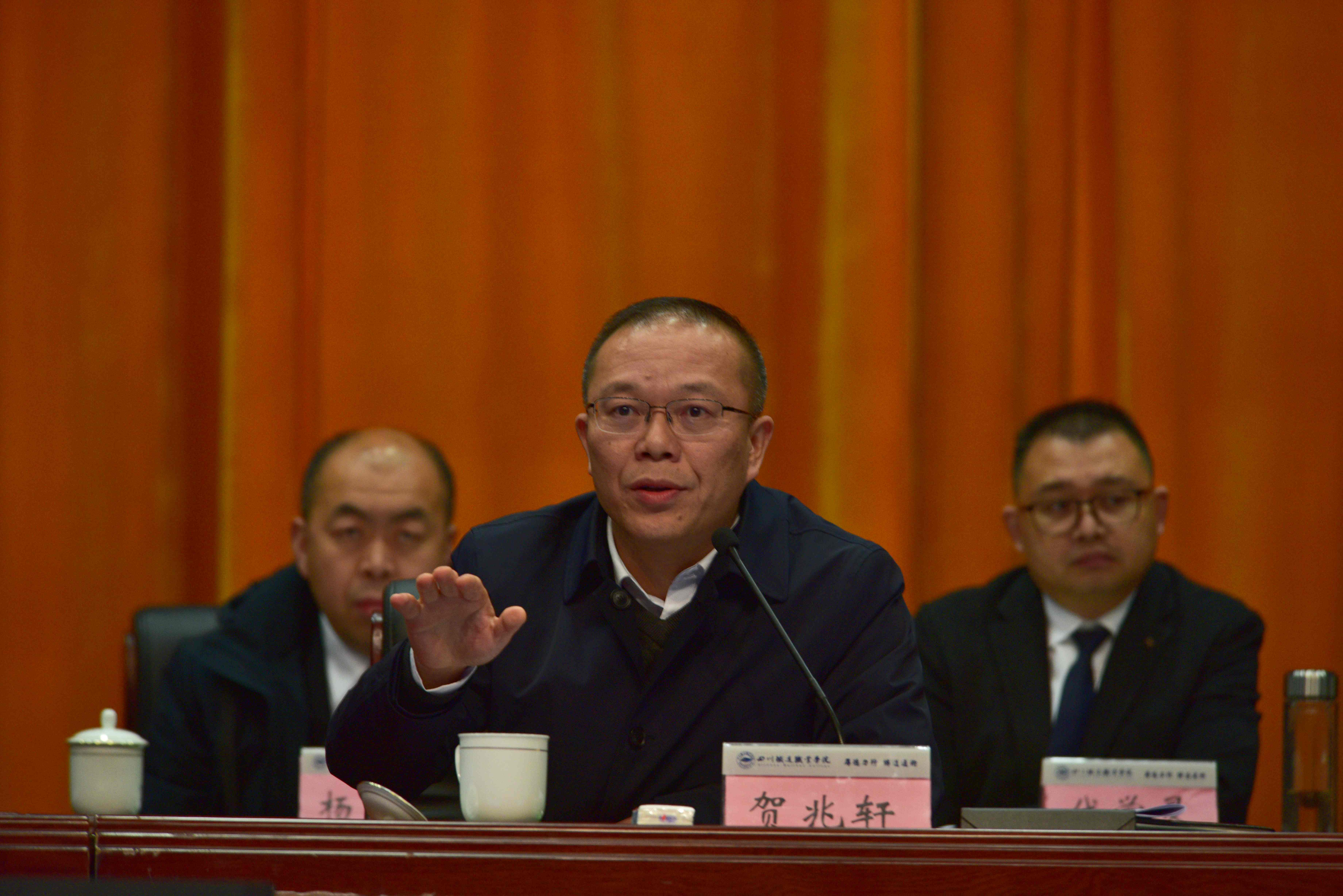 贺兆轩强调,要始终把坚持高质量发展作为新时代学校工作的硬道理,寻脉学校办学与高质量发展、新质生产力之间的关系,紧紧抓住技术创新、管理机制创新、人才培养模式和组织方式创新,深化产教融合、校企合作,密切关注中央到省级层面围绕发展新质生产力的新要求、新部署,从思想上深刻认识高质量发展丰富内涵、核心要义,从实践上精准把握新质生产力的工作要求,完整、准确、全面贯彻新发展理念,主动识变应变求变,主动服务新质生产力。要准确把握职业教育“时”与“势”,深刻认识新型工业化、产业转型发展对职业教育在人才培养、科技创新等方面带来的革命性变化,以及职业教育迎来的重大发展机遇。学校要与时代同频共振,抢抓职教发展机遇,推动学校高质量发展。 贺兆轩强调,要真抓实干,拼出精彩。一要精准发力拼,精准发力拼高质量党建,精准发力拼特色发展,精准发力拼资源统筹;二要团结奋进拼,党委班子要团结,各单位要讲团结,办好民生实事;三要张弛有度拼,要加强人文情怀,关心关爱教职工身心健康;四要追求卓越拼,立足学校办学实际,厚培师资人才队伍成长沃土,打造德技并修技能报国“铁军”,力争建成“西南轨道交通职教高地”。五要守住底线拼,牢固树立“安全重于泰山,稳定压倒一切”的理念,守牢安全稳定底线,压紧压实安全责任。 大会号召,全体教职工要把思想和行动统一到党的二十大精神和党中央、省委省政府重大决策部署上来,坚定信心、勇毅笃行,以创建“双高”为牵引推动学校事业高质量发展,确保完成年度发展目标任务,切实为建设教育强省,谱写中国式现代化四川新篇章贡献川铁力量。