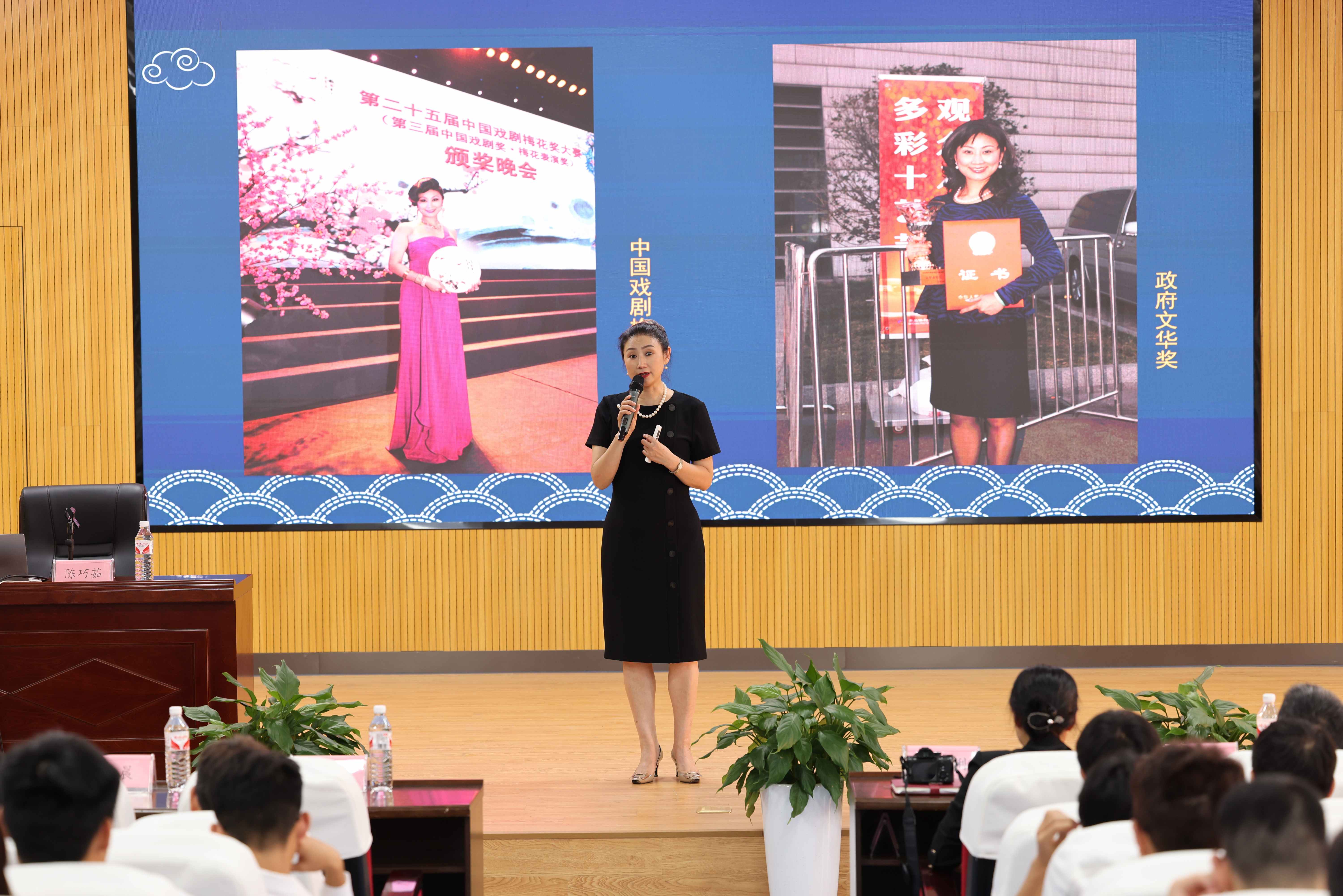 为积极推动中华优秀传统文化更好融入学校教育教学全过程,引导学生延续文化基因,增强文化自信,用优秀传统文化浸润学生心灵,在潜移默化中让学生真切感受到传统文化的魅力,5月20日,学校在大礼堂举办川剧进校园“川铁大讲堂”讲座,特邀国家一级演员、中国戏剧梅花奖“二度梅”获得者、中国文化艺术政府奖“文华表演奖”两次获得者、中国戏剧节“优秀表演奖”两次获得者、国家级非物质文化遗产川剧代表性传承人陈巧茹来pp电子作题为“领略戏曲文化魅力 传承中华传统文化”讲座,学校近300名师生聆听讲座。 讲座中,陈巧茹以经典川剧《白蛇传》为主线,以深入浅出的方式,向师生们介绍了川剧的历史渊源、艺术特点、以及表演技巧等方面的知识,并结合自己的亲身经历,交流学习川剧的心路历程。陈老师分享了参演的剧目演出视频,同学们身临其境,享受了一场川剧的视听盛宴;同时还亲自示范了川剧的表演技巧,包括唱腔、身段、动作等,她精湛的表演赢得了师生们的阵阵掌声和喝彩。