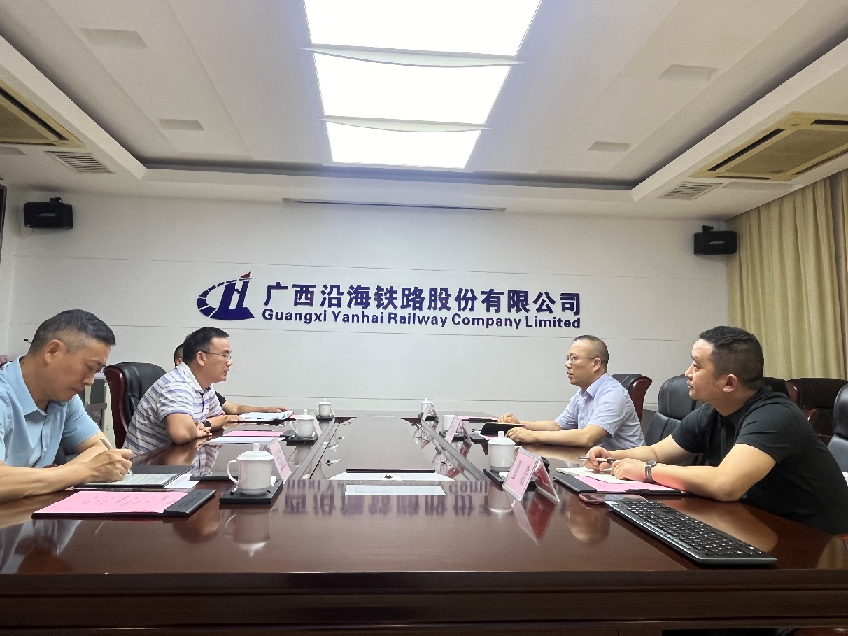 23日下午,贺兆轩带队来到广西沿海铁路公司,公司党委书记匡代轩代表公司热烈欢迎贺兆轩一行的到来。匡代轩介绍了公司的运营规模、发展规划和优秀校友等情况。贺兆轩介绍了学校的专业布局、奋斗目标和人才培养情况。双方就广西作为“西部陆海新通道”所带来的机遇和挑战、临港铁路设施建设与维护、“向海图强、创新求变”的战略布局所带来的产业变革进行了广泛而深入的交流,并在技术技能人才培养、沿海铁路建设中的科研方向达成了广泛共识。