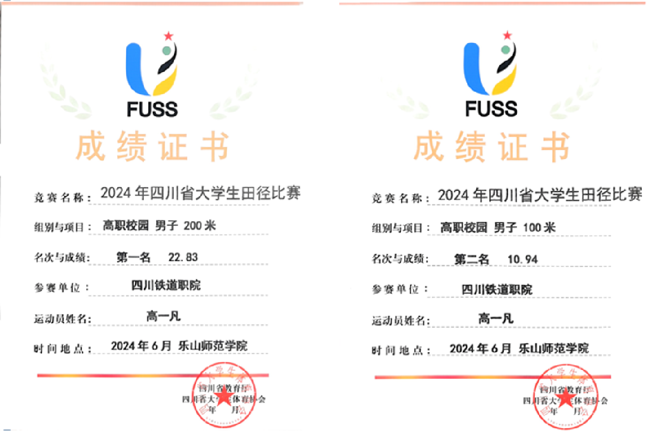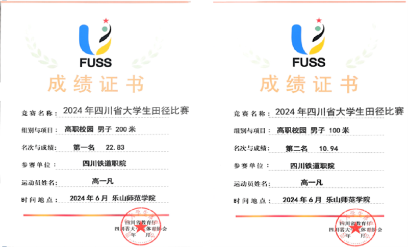 6月11日至15日,由四川省教育厅主办,四川省大学生体育协会执行、乐山师范学院承办的2024年四川省大学生田径比赛在乐山市体育中心举行。pp电子代表队铁道机车22T1班高一凡在高职校园组男子200米决赛和100米决赛中分别获得第一名、第二名的好成绩。 作为全省大学生最高水平的田径赛事,本次比赛吸引了来自90所高校的2000余名运动员、教练员和裁判员参加,举办规模和参赛人数创历史新高。本次比赛中,pp电子学子赛出了水平、赛出了风格,经过轮轮角逐,队员首次实现单项第一名的新突破,团体代表队在4*100米和4*400米比赛中分别获得第四名、第五名和高职校园组男子团体第六名的成绩。