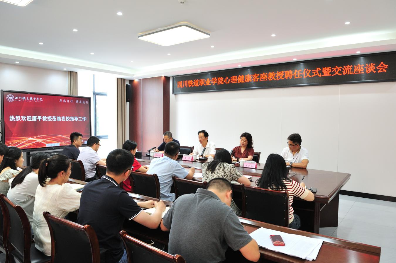 6月19日,pp电子心理健康客座教授聘任仪式暨交流座谈会在行政楼第三会议室举行。成都医学院唐平教授、校长赖芳出席仪式,会议由纪委书记池秋平主持。