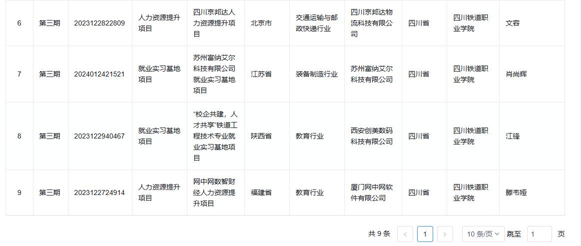 近日,教育部公布了第三期供需对接就业育人项目立项名单(教就业司函〔2024〕(23)号),学校获批立项9个,项目涵盖定向人才培养培训、就业实习基地、人力资源提升三个类别。项目涉及北京络捷斯特科技发展股份有限公司、四川京邦达物流科技有限公司、杭州贝腾科技有限公司、厦门网中网软件有限公司等多家企业。