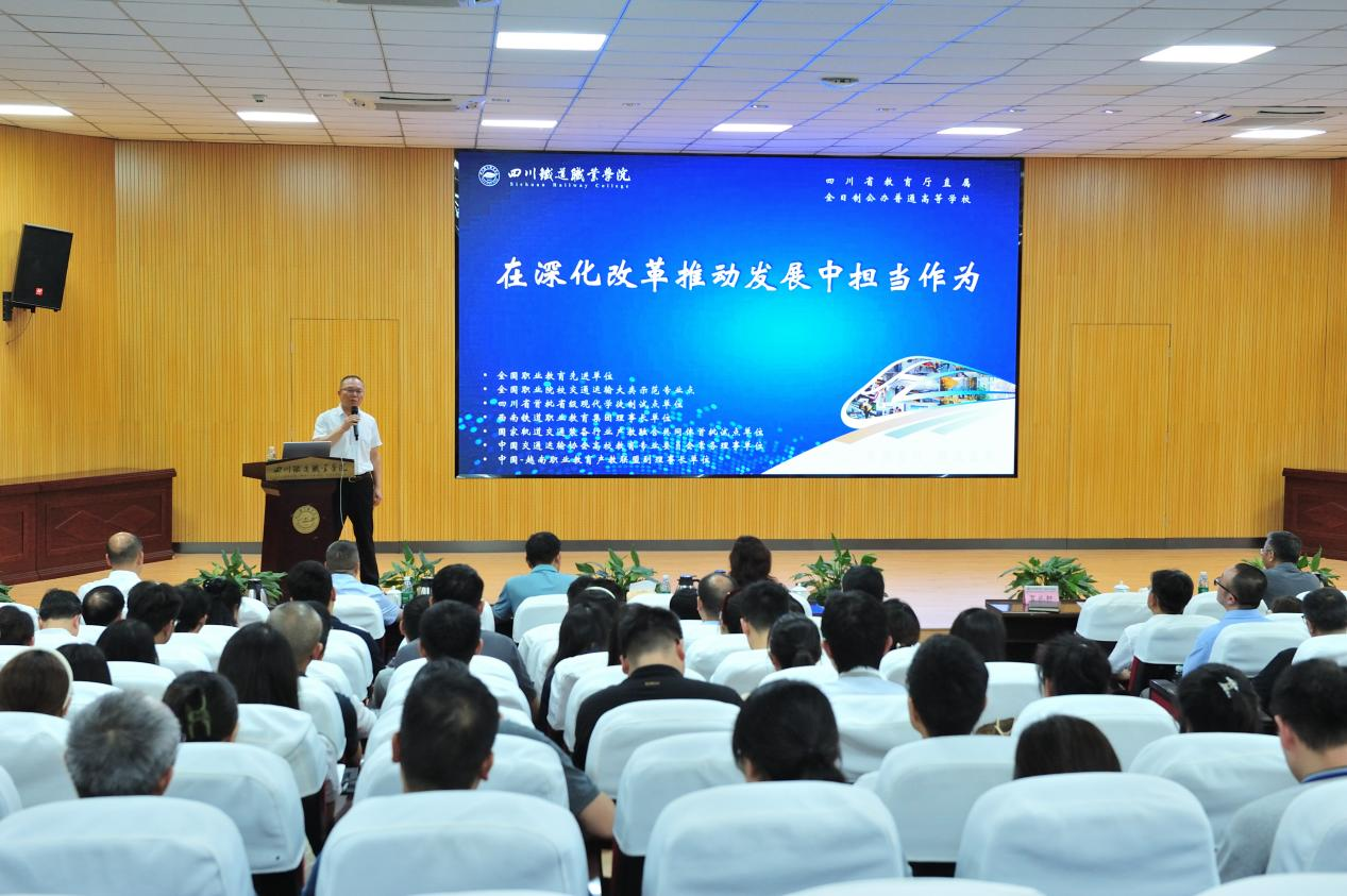 7月10日,学校在成都校区学术报告厅召开年中工作推进会,党委班子成员出席会议,会议由党委委员、纪委书记池秋平主持。全体中层干部和单位(部门)内设机构负责人、专职组织员、基层党支部书记、学术委员会成员、教学督导员、教研室主任、辅导员及新入职教职工参加会议。