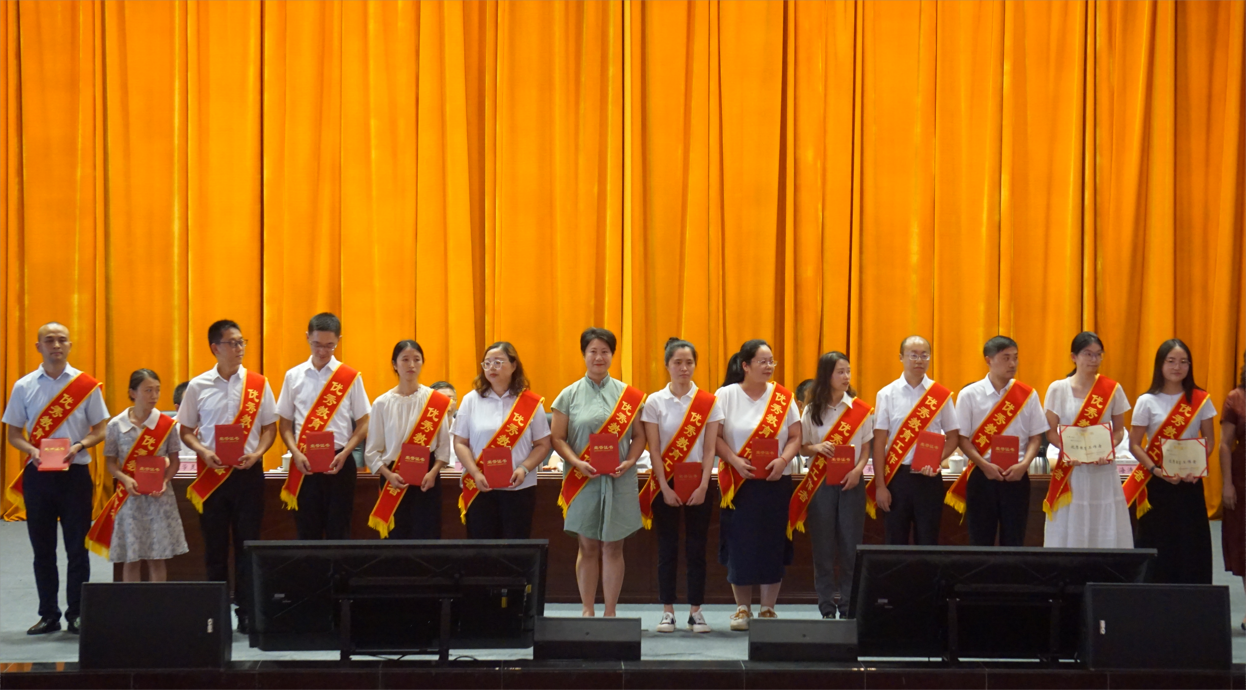 随着庄严的国歌声响起,庆祝大会正式拉开帷幕。黄恩兴宣读了2024年优秀个人表彰决定等表彰文件,102名优秀个人和27名近两年来在教学、科研、竞赛等方面取得标志性成果的团队和个人代表先后上台接受表彰,学校领导为他们颁奖。学生代表向全体教师献词朗诵,感谢老师们的默默付出和无私奉献。匠心独运的《岁月如歌 师道永恒》沙画演绎呈现了学校坚苦卓绝的奋斗历程和老师们潜心教书育人的辛勤付出。