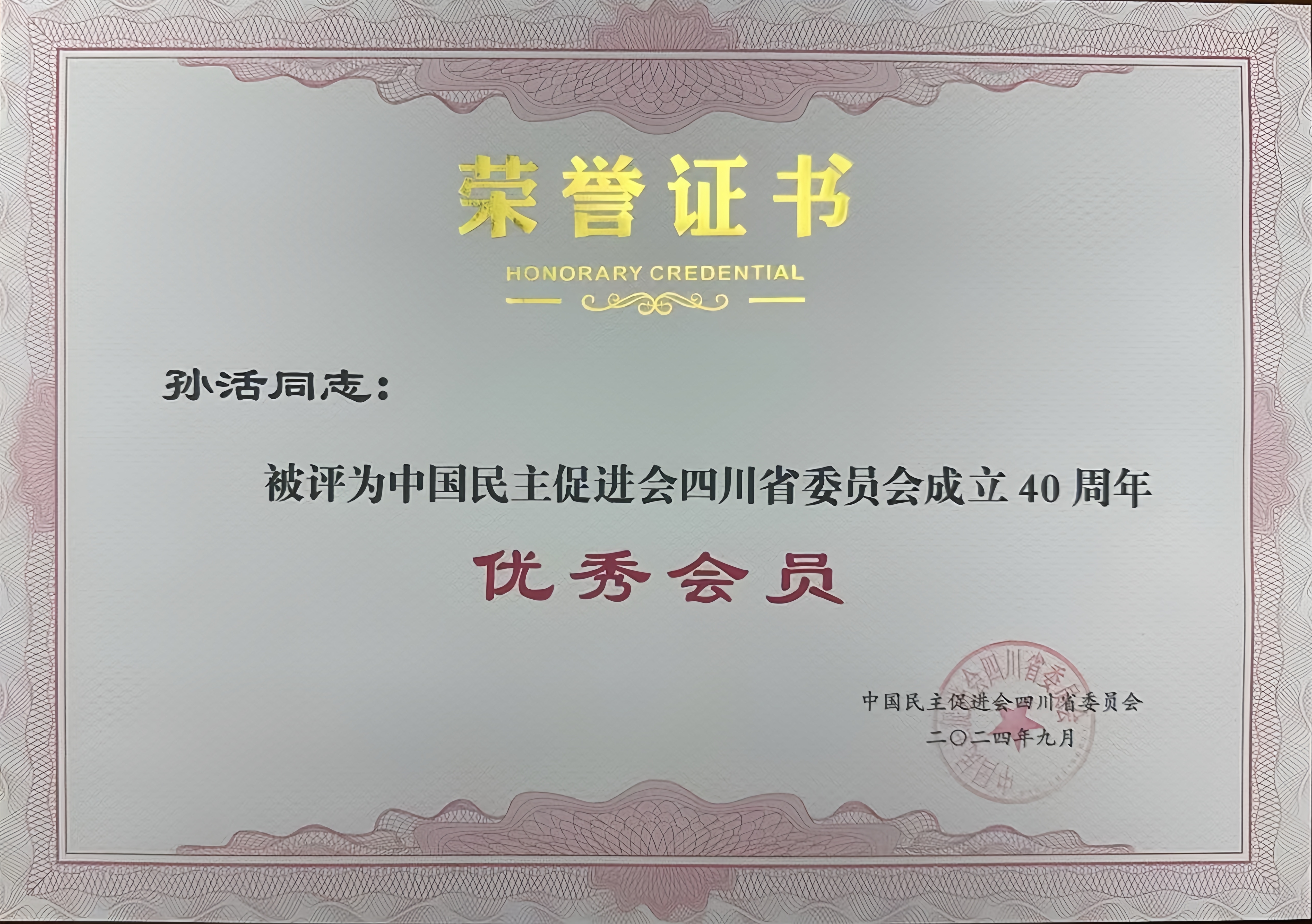 会上,民进四川省委会副主委、成都市委会主委杨建德宣读了《关于表彰民进四川省委会成立40周年优秀会员的决定》,pp电子民进会员孙活被授予民进四川省委会成立40周年优秀会员称号。