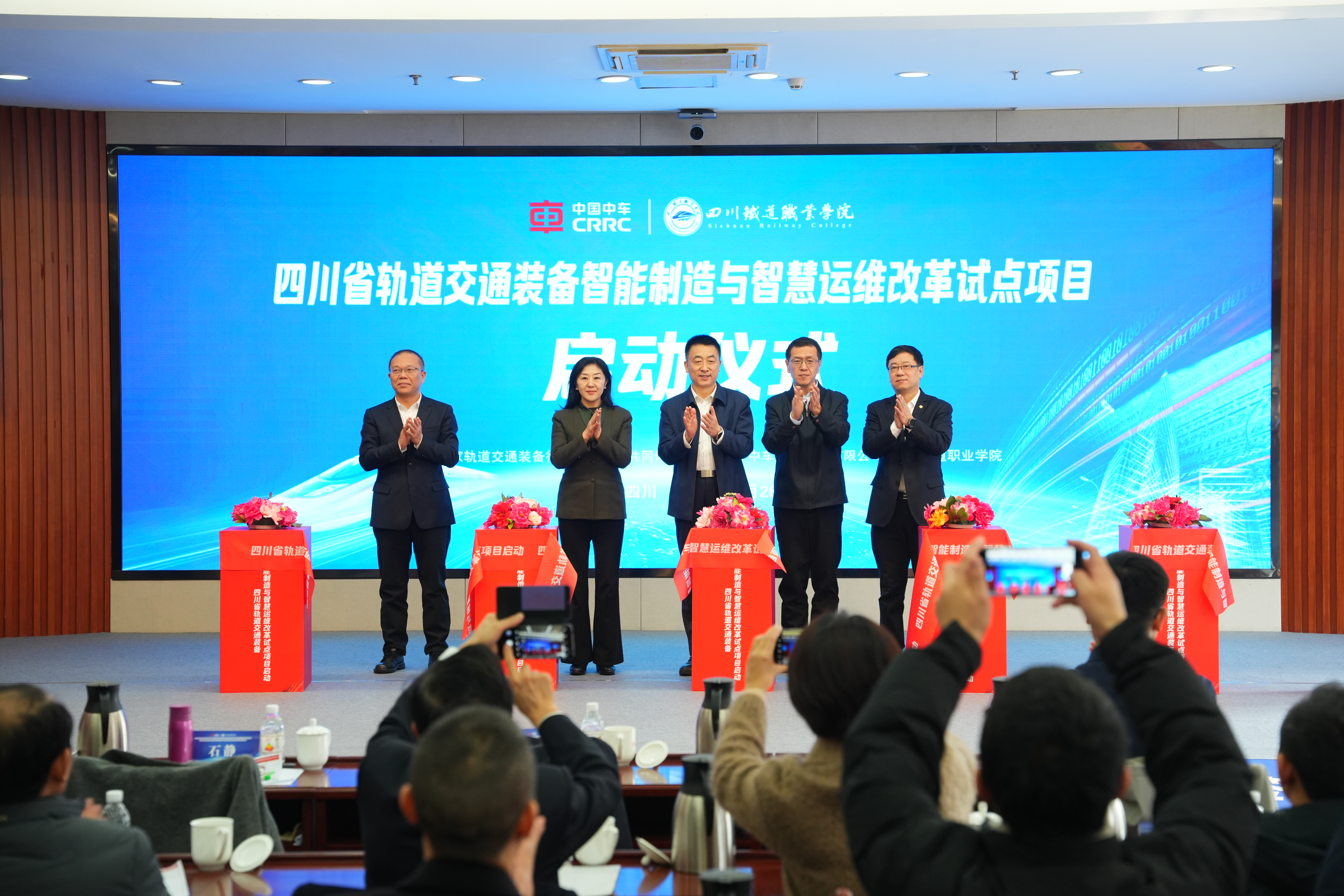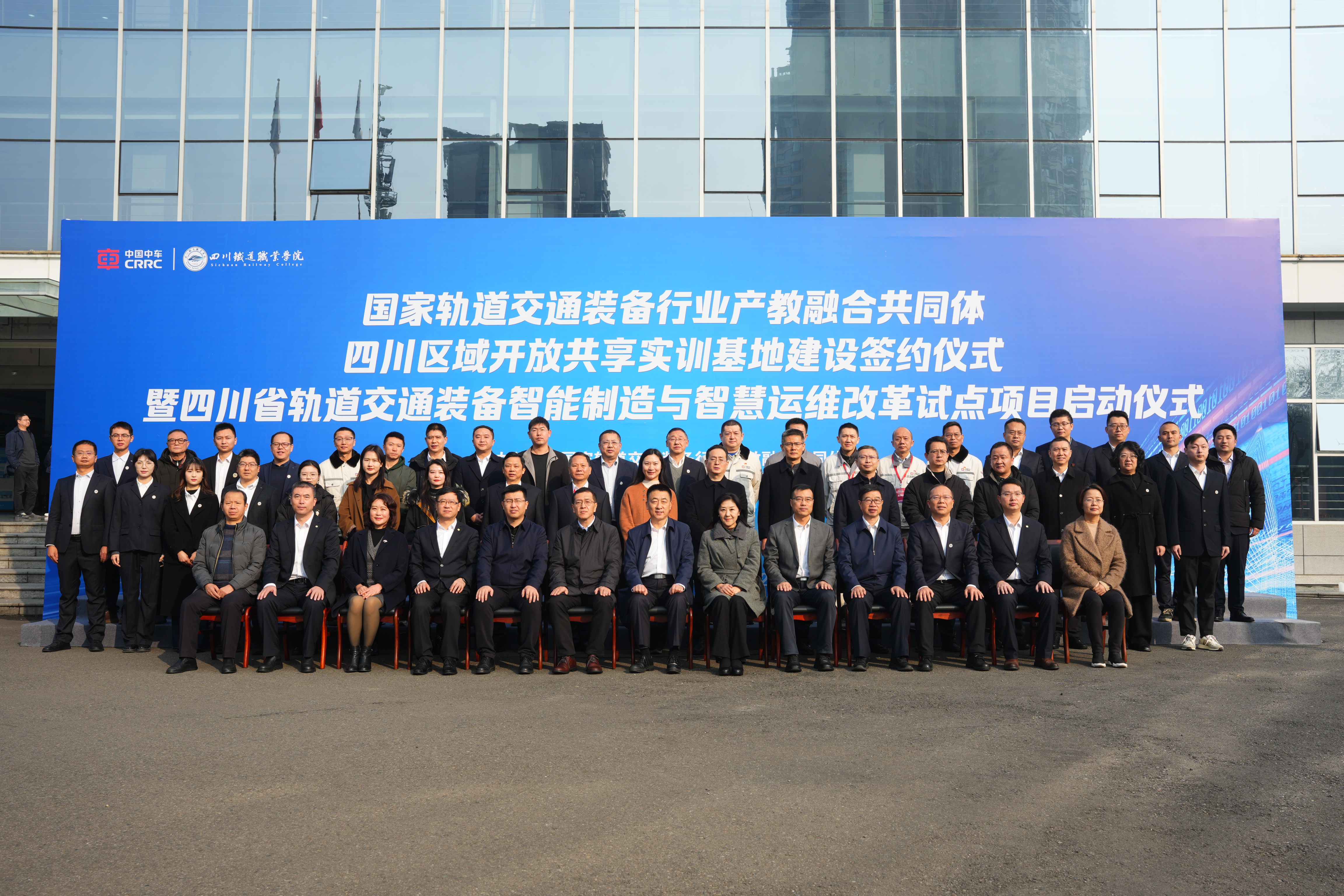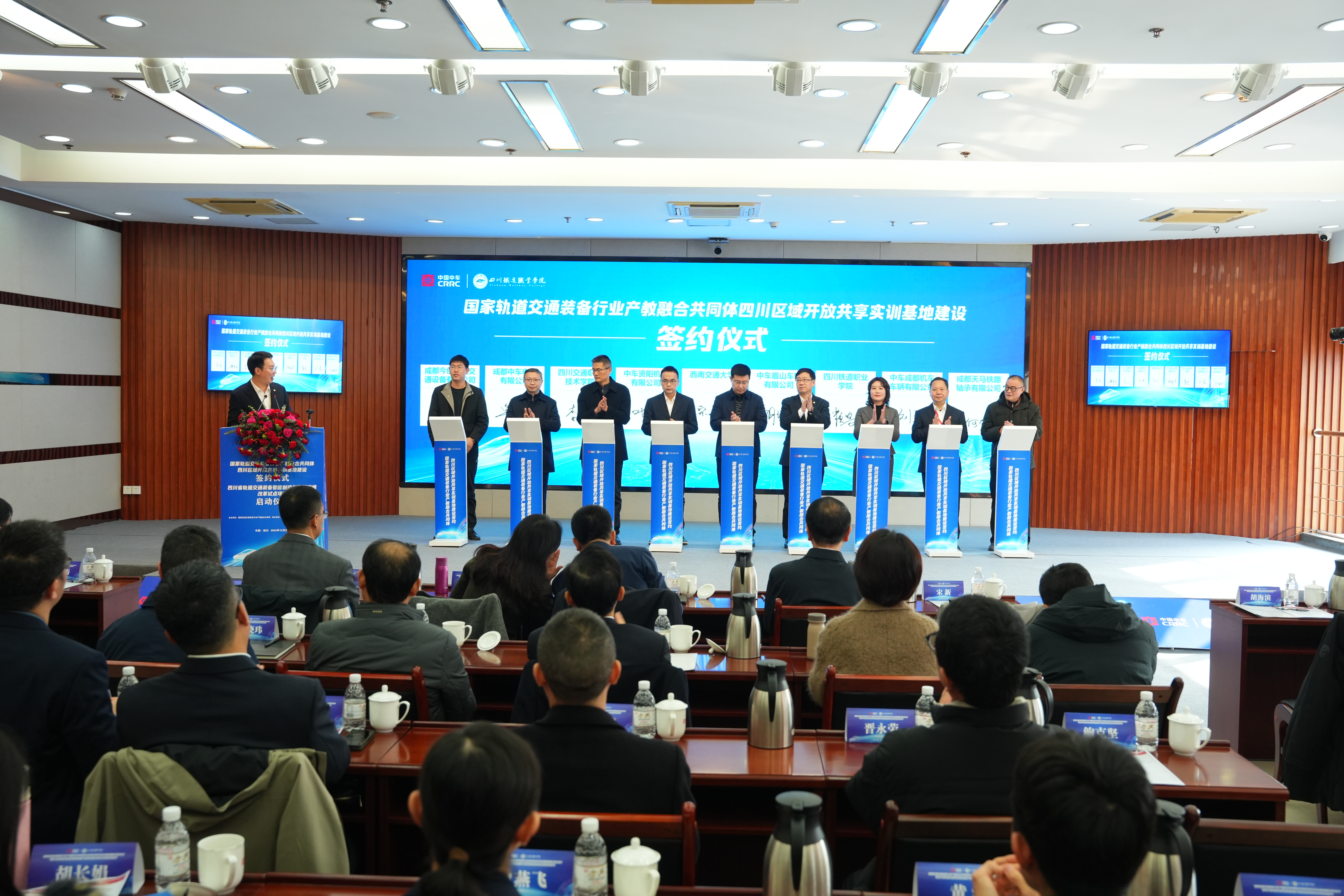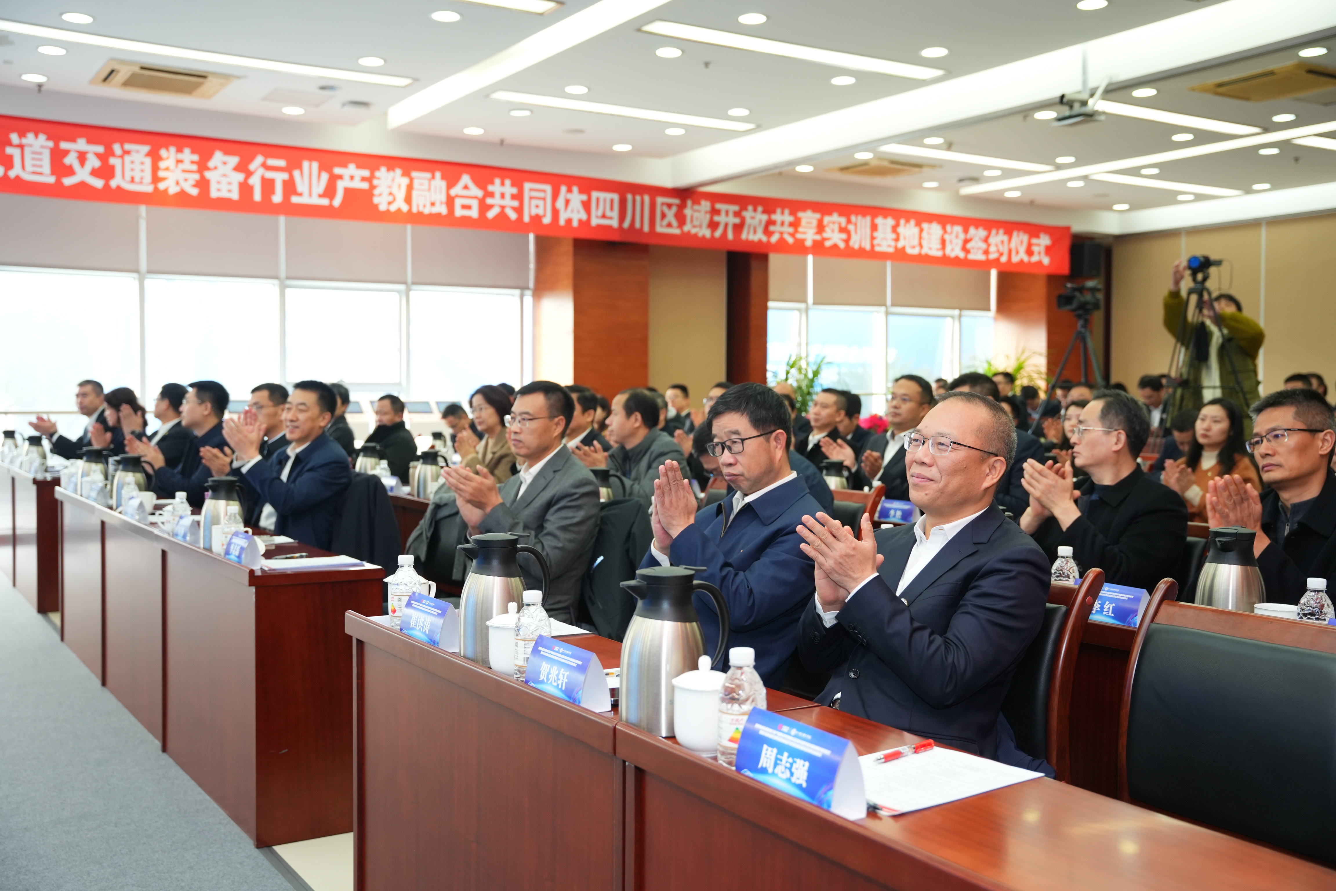 为深入贯彻落实习近平总书记关于教育的重要论述和对产教融合工作作出的重要指示精神,努力打造具有轨道交通装备行业产教融合共同体标杆示范,为轨道交通装备行业加快发展新质生产力夯实人才根基,12 月 26 日,国家轨道交通装备行业产教融合共同体四川区域开放共享实训基地建设签约仪式暨四川省轨道交通装备智能制造与智慧运维产教融合改革试点项目启动仪式在眉山举行。中国中车集团有限公司党委委员、工会主席赵虎,中共四川省委教育工委委员、教育厅党组成员、副厅长石静,眉山市人民政府党组成员、副市长田一澍,学校党委书记贺兆轩、校长赖芳等出席签约仪式。