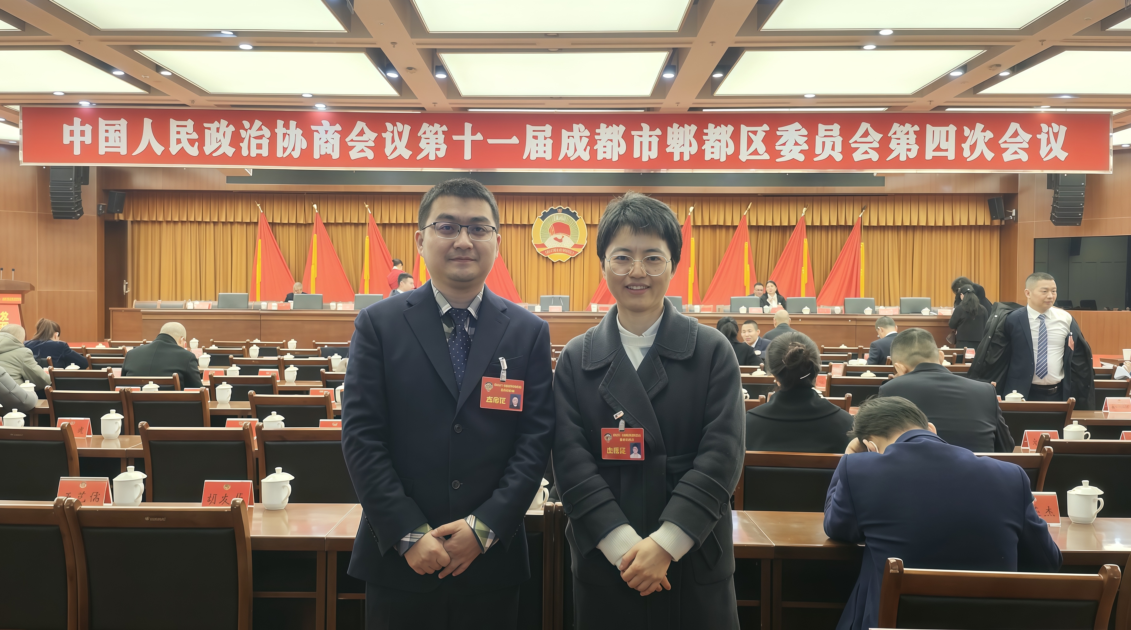 近日,中国人民政治协商会议第十一届成都市郫都区委员会第四次会议顺利召开。pp电子副校长王浩澂、知联会副会长孙活作为政协委员出席会议,围绕区域经济社会发展热点、难点问题积极建言献策。 会议期间,王浩澂和孙活两位委员分别提交了《关于激发政协委员社情民意反映潜能,促进协商议政高质量发展的建议》和《关于构建思政育人全链条,打通全区“大中小课程思政一体化”的“最后一公里”》两个提案。提案聚焦郫都区社会治理和教育发展的关键领域,分析了目前存在的问题,提出针对性的解决方案,受到了与会委员和相关部门的高度关注与一致认可。
