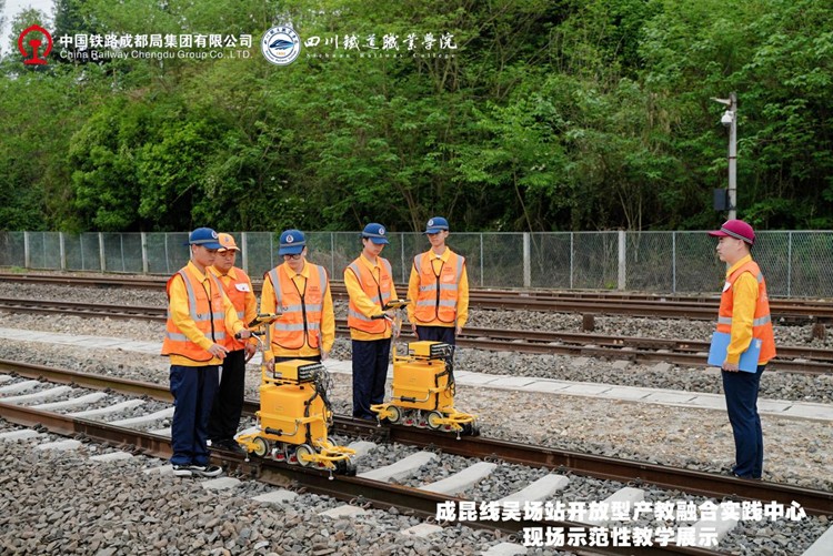 2025年4月22日,在成昆线吴场站开放型产教融合实践中心举行了一场别开生面的沉浸式现场示范教学,实现课堂与车间的“无缝”衔接,技能与行业的“零距离”对接,开启了校企协同育人的新篇章。
