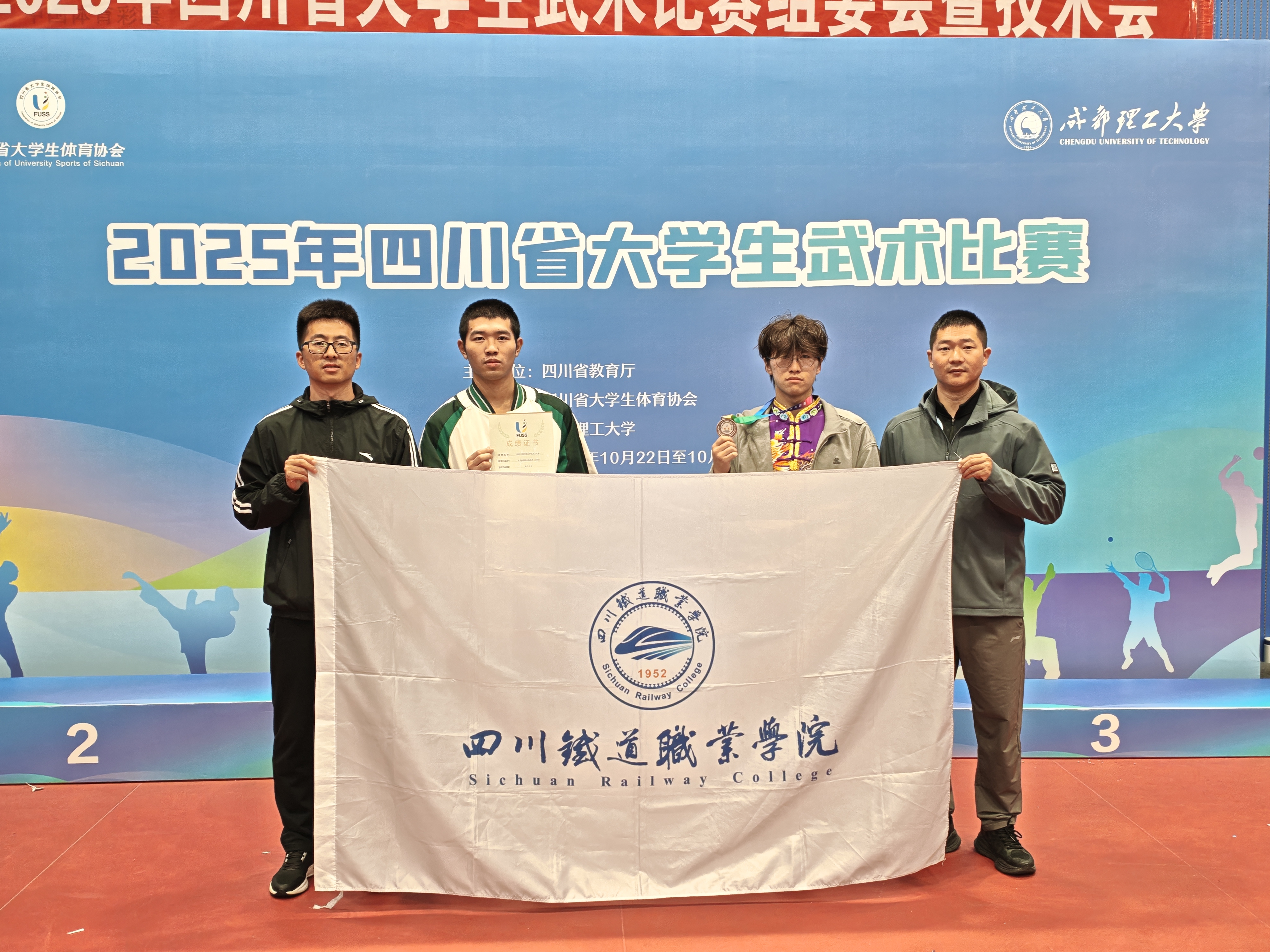 10月23日至24日,由四川省教育厅主办、四川省大学生体育协会执行、成都理工大学承办的2025年四川省大学生武术比赛在成都城东体育公园举行,pp电子首次选派学生参赛,荣获男子自选刀术项目第三名等3项荣誉。 作为全省高校体育领域的年度重要赛事,本次比赛吸引了来自全省55所高校的419名运动员参加,竞赛项目涵盖拳术类、器械类、对练项目及集体项目四大类。pp电子体育教师母刚、陈翰宇认真组织学生开展赛前选拔和训练。赛场上,pp电子2名运动员沉着应战,凭借扎实的武术功底、娴熟的动作技巧与稳定的临场发挥脱颖而出,铁道工程技术25T5陈钦浩同学获得男子自选刀术赛项第三名、自选长拳赛项第八名,凭借出色的表现与体育精神,获评“优秀运动员”称号,为学校赢得了荣誉。 本次比赛不仅是检验全省大学生武术运动发展水平的重要平台,更是传承中华武术文化、落实体教融合政策的生动实践。pp电子学子的出色表现不仅展现了他们过硬的武术技能与良好的竞技素养,更为学校体育教育教学改革积累了宝贵经验。未来,学校将持续推进“以体育人”“以赛促教”,进一步提升学生职业综合素质,助力学生全面发展。