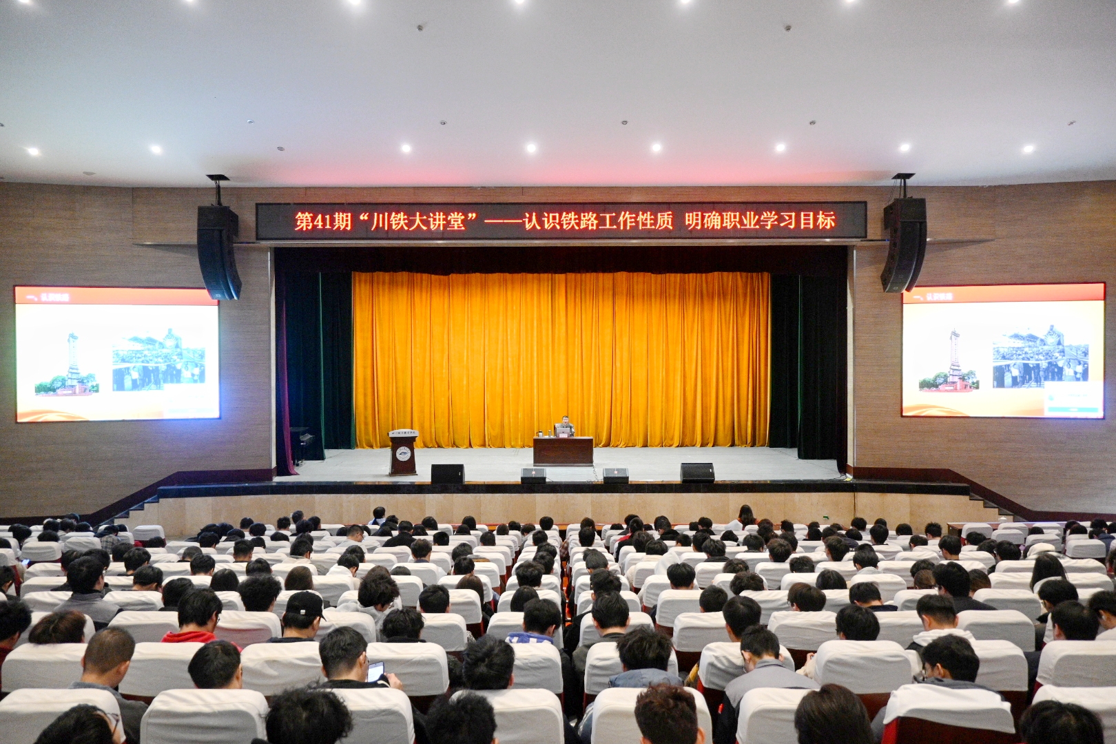 为深入贯彻落实习近平总书记关于关心下一代工作的重要指示精神,充分发挥“五老”在立德树人中的独特作用,11月10日下午,学校举办第41期“川铁大讲堂”。活动特邀四川省关工委“五老”宣讲团成员、中国铁路成都局集团有限公司关工委副秘书长、高级工程师唐光平作专题讲座。近1200名铁路专业大一新生代表及校关工委成员参加活动。