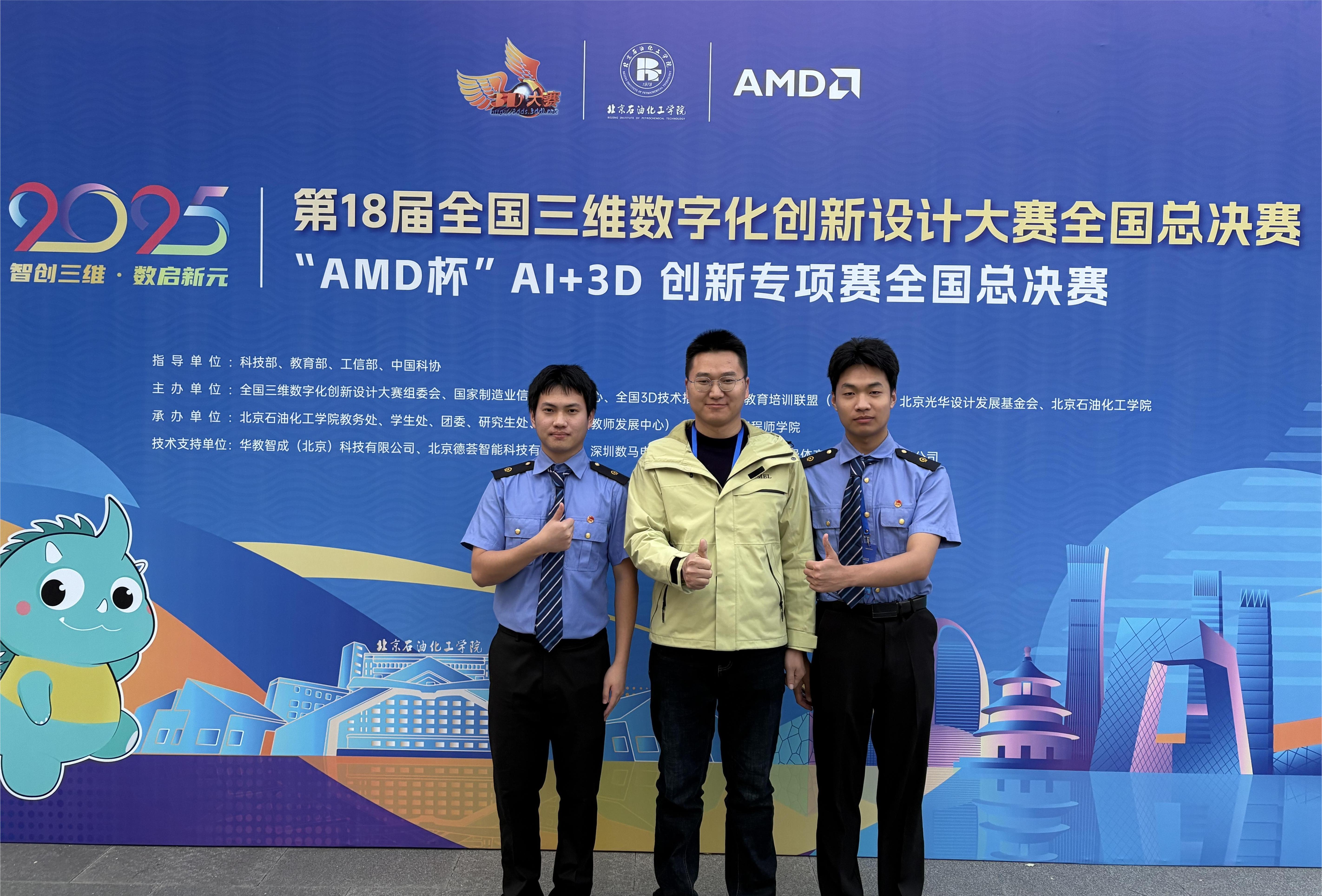 近日,第18届全国三维数字化创新设计大赛(简称“全国3D大赛”)年度总决赛“AMD杯”AI+3D创新专项赛在北京结束。pp电子“cake战队”凭借作品《红线之下:飞驰万里台 安危一念间》,从全国百余所高校参赛队伍中脱颖而出,荣获全国二等奖。 全国三维数字化创新设计大赛(简称“全国3D大赛”)作为国内规模最大、水平顶尖、影响力广泛的重要赛事之一,已被正式纳入全国高校学科竞赛排行榜评估体系。本届“AMD杯”AI+3D创新专项赛聚焦推动人工智能与三维数字化技术的深度融合与创新应用,吸引了全国众多高校的优秀团队同台竞技。 由pp电子学生陈洪亮、刘聘鑫、熊鑫、李俊熙、桂胜瑜组成的“cake战队”,在李惠群、游钱炳两位老师的指导下,团结协作、勇于突破。其获奖作品《红线之下:飞驰万里台 安危一念间》构思新颖,巧妙地将AI技术与三维建模有机融合,技术实现完整,充分展现了团队成员扎实的专业功底与出色的复杂问题解决能力,最终赢得专家评委的高度认可。