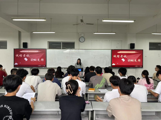 树道德之新风,立诚信之根基,是当代大学生义不容辞的责任。而诚信考试是学生的基本行为规范,更是入党积极分子应具有的道德素质。铁道工电学院于2024年6月17日,在2419教室开展工电讲堂第三十九讲,辅导员戴璐及在校入党积极分子参加本次活动。主持人为黄程。