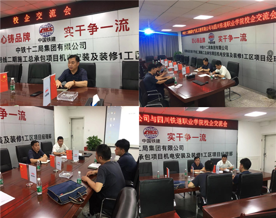 中铁十二局集团电气化工程有限公司成都地铁5号线机电安装及装修项目部负责人王成君对张果书记一行人进行了接待,并开展交流座谈,会上王成君经理对张果书记一行来访调研表示热烈欢迎,与张书记就企业用工模式、实习、合作意向及科研合作等问题进行了深入交流;对产业工人需求大和毕业生就业难的问题、目前毕业生就业观和职业素养等现状进行热烈的探讨;交流会上王成君经理明确表示,将积极为学院牵线搭桥,力所能及地通过公司青藏、川藏铁路项目及铁路养护公司帮助学院提供就业实习岗位、加强科研合作。