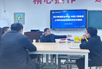 2023年12月1日下午,中铁八局电务公司科技信息部白林部长、项目经理陈友军一行到铁道工电学院开展科研合作座谈会,铁道工电学院教师汪润泽、赵远等老师参加座谈。