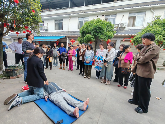 随后,志愿者们与村民们一起参与了模拟急救演练。在老师们的指导下,村民们纷纷尝试操作AED设备,学习心肺复苏等急救技能。演练过程中,志愿者们耐心细致地解答村民们的疑问,确保他们能够熟练掌握这些急救技能。