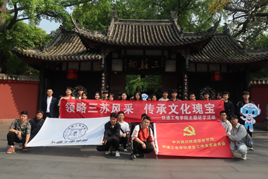 党的十八大以来,习近平总书记对中华文化自信自强、中华文明永续发展提出一系列新思想新观点新论断,指出:“中华民族有着五千多年的文明史,我们要敬仰中华优秀传统文化,坚定文化自信。”跟随习近平总书记的脚步,4月13日,铁道工电学院28名同学在辅导员张洋的带领下,步入三苏祠,开展以“领略三苏风采,传承文化瑰宝”为主题的研学活动。