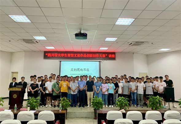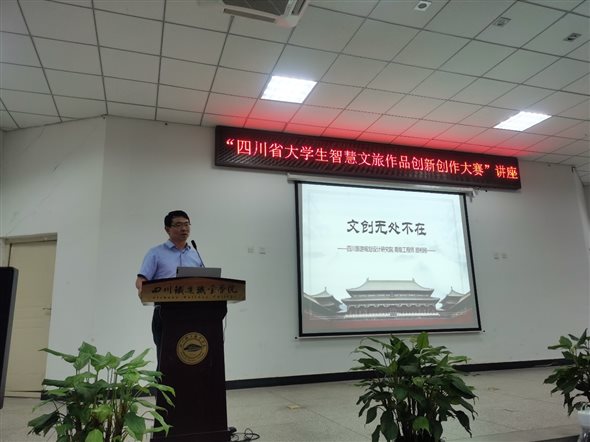 为了培养大学生创新能力、就业能力,提高设计水平和跨界团队合作意识,丰富旅游文化体验,拓展新一代信息技术应用范围,积极备战第二届“四川省大学生智慧文旅作品创新创作大赛”,“文创无处不在”主题讲座于6月16日晚在学术报告厅顺利举办。本次讲座邀请到大赛的竞赛指导顾问、四川旅游规划设计研究院设计所所长、高级工程师顾相刚担任嘉宾,机车车辆系教师孙活、机车车辆系团总支书记刘静雅、交通工程系团总支书记董衡以及两系近100名学生参与本次讲座,董衡老师担任讲座主持人。