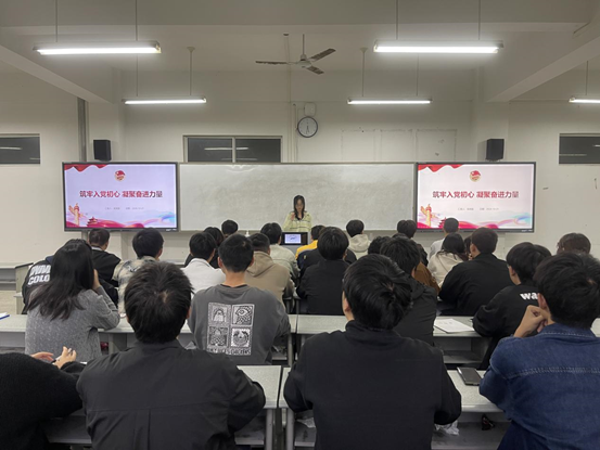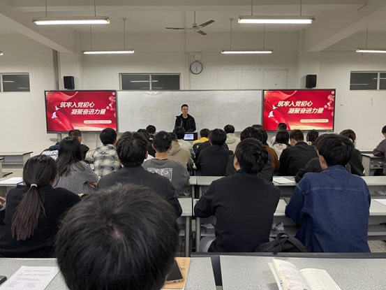 吴其琏同学作为入党积极分子的代表,在交流前抛出一个问题:回忆自己的入党初心是什么?随后讲到作为入党积极分子,我们要时刻牢记入党初心,保持团结一致、凝聚奋进力量的精神风貌和奋斗精神。我们要不断加强自身建设,提升综合素质和能力水平;要积极参与社会实践,锤炼过硬本领和意志品质;要勇于担当责任使命,为实现国家富强、民族振兴、人民幸福而不懈奋斗。