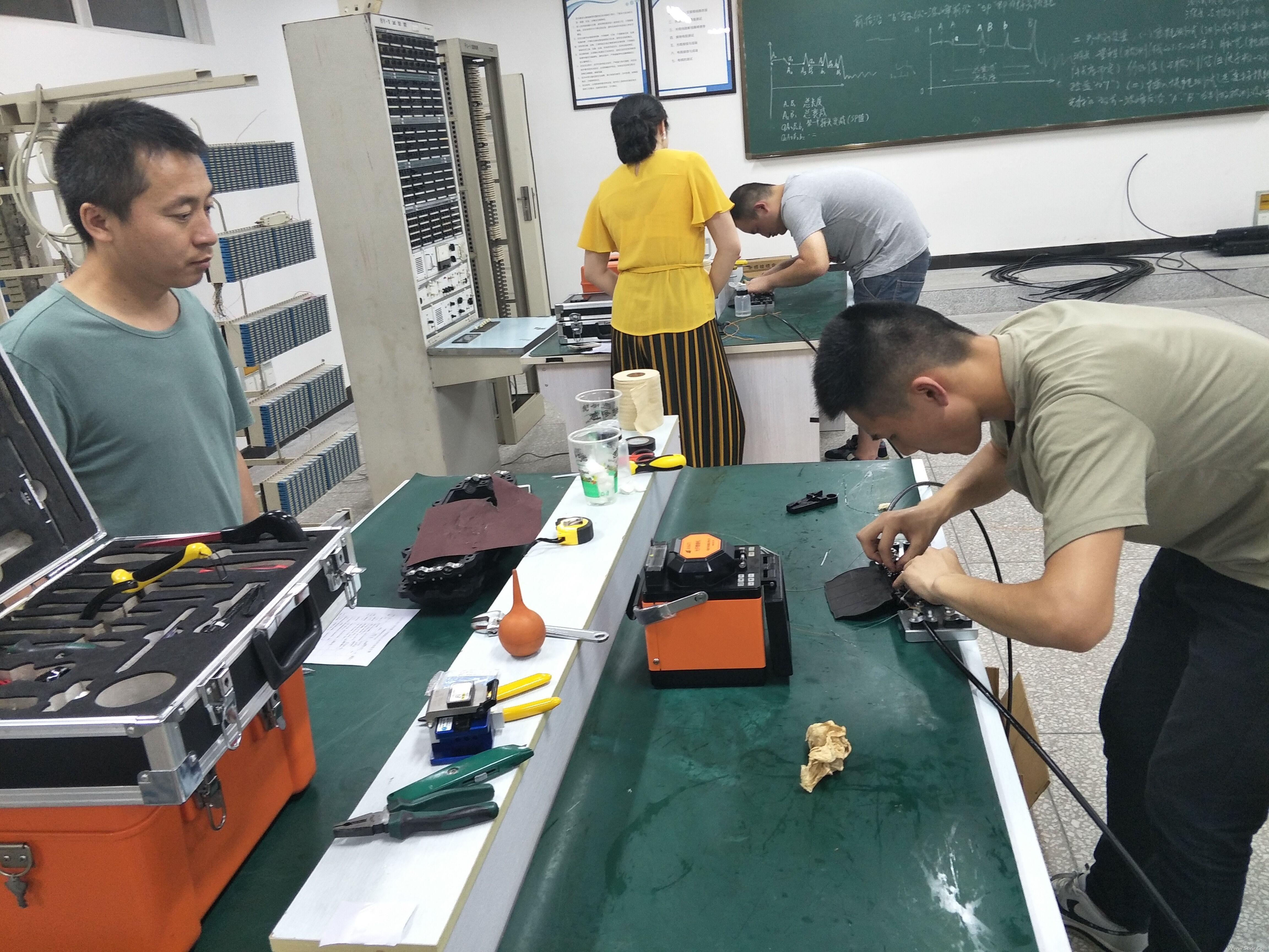 此次比赛的内容包括:光缆开剥、光纤接续、盒体安装及密闭性、综合能力、文明生产等项目。赛前,裁判组仔细检查了比赛场地、材料、工具和仪表。经研究讨论,制定了评分细则。比赛中,参赛选手操作规范、技术娴熟。裁判全程监督,认真评分,挖掘实操能手。赛后,系里向获奖同学颁发了证书,以资鼓励。