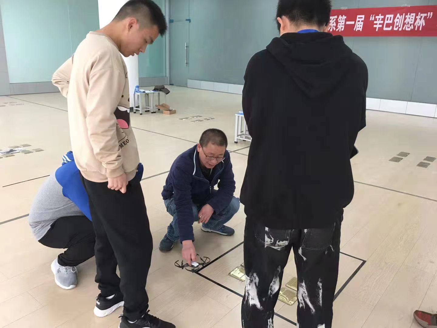 参赛选手以四人为一组进行比赛,比赛共分为4个区域,起飞区,表演区,停泊区和拍摄区。开始比赛每组有20分钟对无人机进行编程及调试,选手按照指定任务,思考后对线路进行规划。20分钟结束,选手依次进行比赛。比赛共有3次起飞机会,时间共计5分钟。