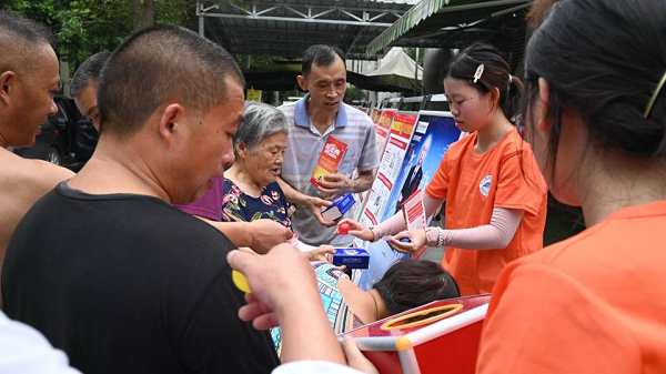 志愿者们与村委会工作人员在云丰村党群服务中心前合照